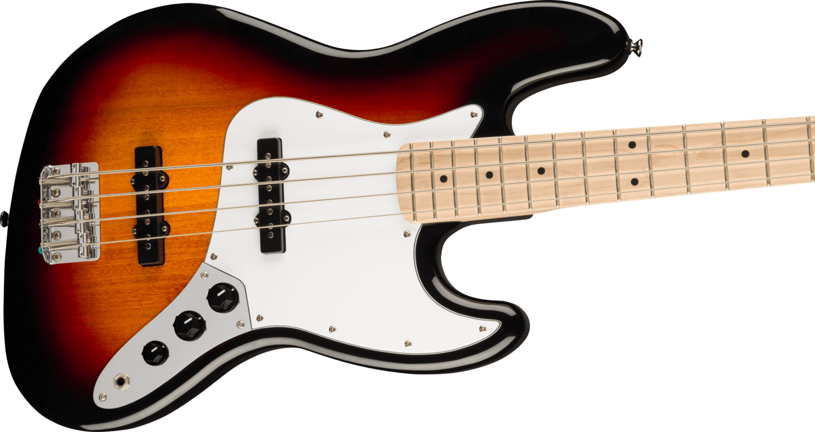 The Fender Squier Affinity Jazz Bass MN, finished in 3-Color Sunburst, is the perfect way for beginner to intermediate bassists to start playing bass, offering legendary design, and quintessential Fender tone. With a thin, light-weight body and a slim, super comfortable and easy to play C-shaped Maple neck, the Jazz Bass offers hours of comfortable playability, whether practicing at home, recording in the studio, or performing on stage. A versatile pair of Squier ceramic single-coil Jazz Bass pickups offer a variety of tones, great for everything from funk and jazz licks, to gained up rock riffs.
