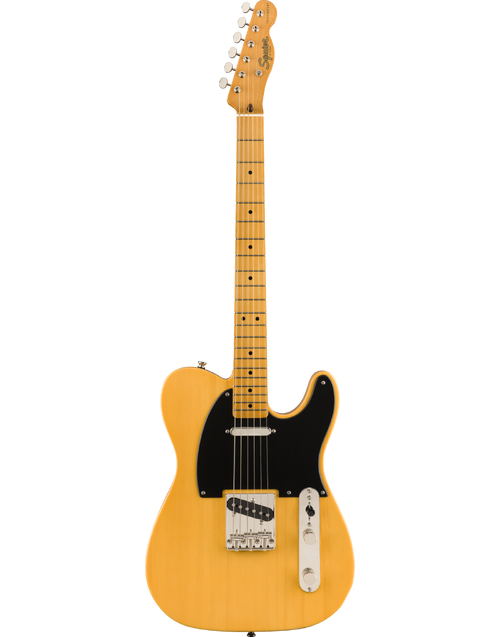 A celebration of the birth of the Tele in the early 1950s, the Classic Vibe '50s Telecaster creates incredible tone courtesy of the Fender-Designed alnico single-coil pickups. Player-friendly features include a slim, comfortable "C"-shaped neck profile with an easy-playing 9.5"-radius fingerboard and narrow-tall frets, as well as a vintage-style Telecaster bridge with barrel saddles and string-through-body design. This throwback Squier model also features 1950s-inspired headstock markings, rich-looking nickel-plated hardware and a slick vintage-tint gloss neck finish for an old-school vibe.