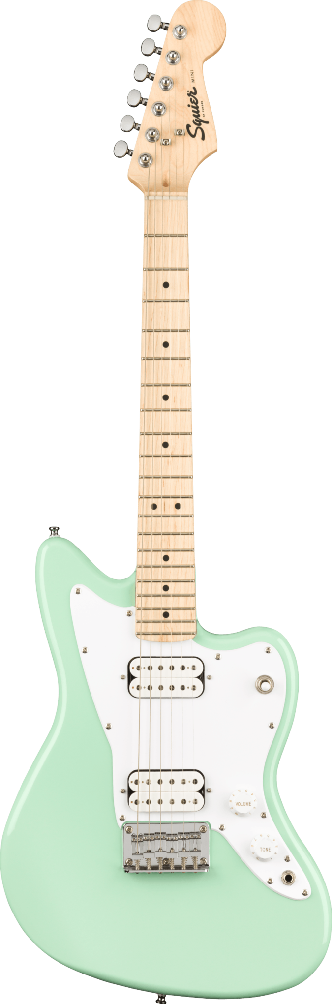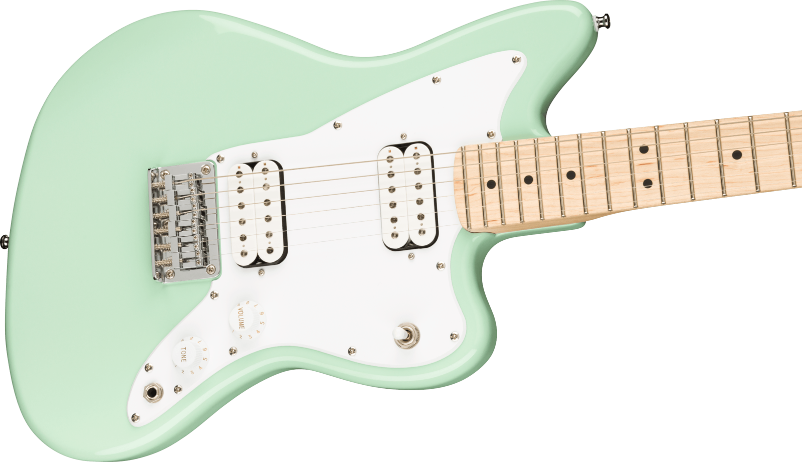 The Squier Mini Jazzmaster HH is the perfect companion for players seeking a reduced-size instrument with classic styling and familiar Fender tone. Highlights include a thin and lightweight body, an easy-to-play “C”-shaped neck profile, dual Squier humbucking pickups with 3-way switching for sonic variety, and a hardtail bridge for solid tuning stability.