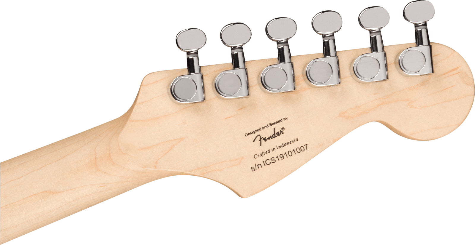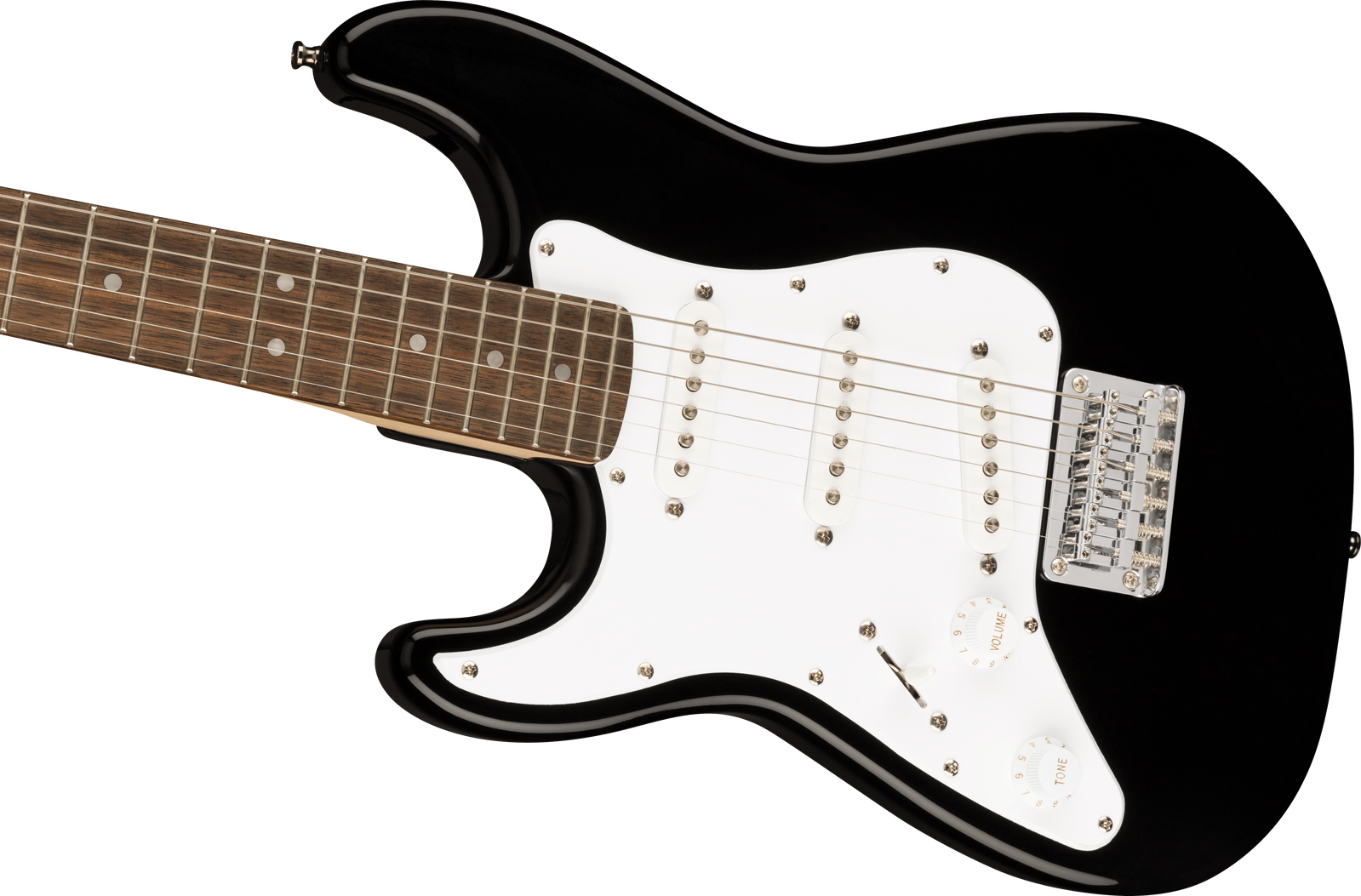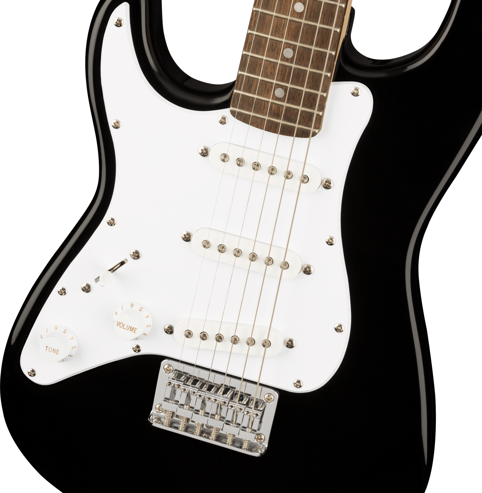 The Squier Mini Stratocaster is the perfect companion for players seeking a reduced-size instrument with classic styling and familiar Fender tone. Highlights include a thin and lightweight body, an easy-to-play "C"-shaped neck profile, a trio of Squier single-coil pickups with 5-way switching for sonic variety, and a hardtail bridge for solid tuning stability.