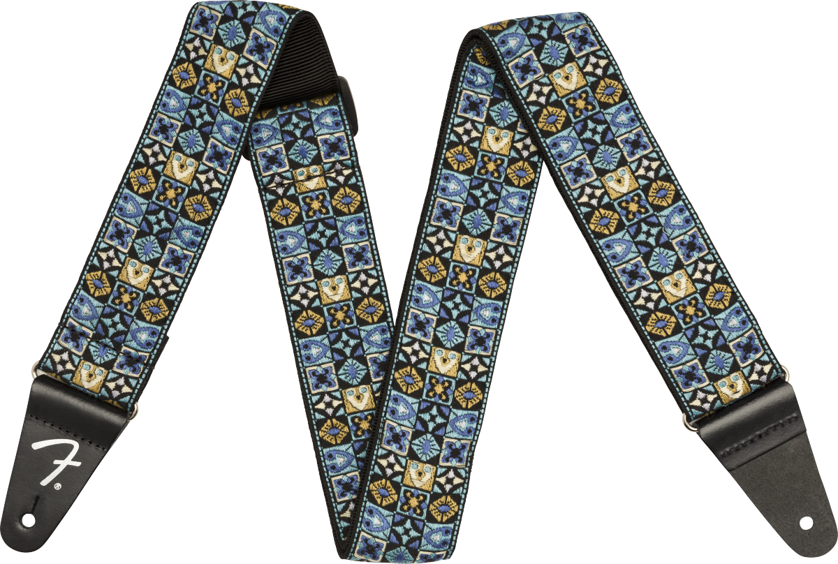 Fender's 2" vintage-inspired woven straps boast a decorative mosaic design, as well as features to keep your instrument intact and stable during performances. The color schemes replicate straps used by famous Fender artists.
