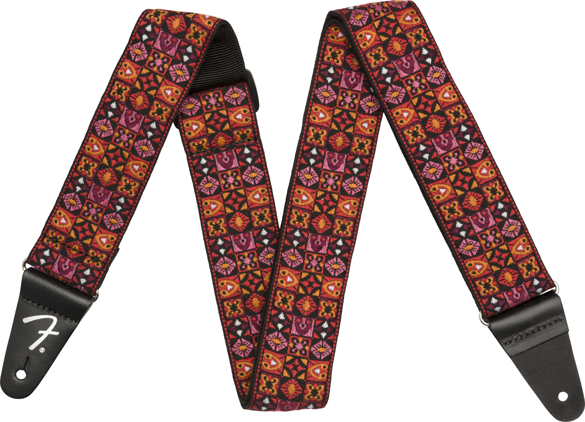 Fender's 2" vintage-inspired woven straps boast a decorative mosaic design, as well as features to keep your instrument intact and stable during performances. The color schemes replicate straps used by famous Fender artists.