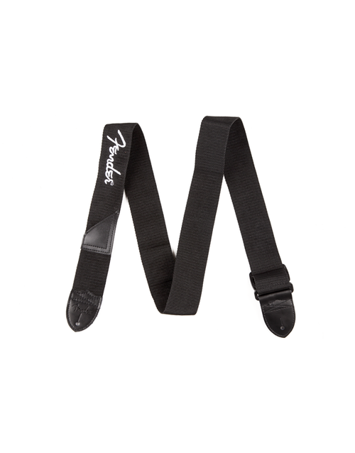 Thanks to an assortment of quality features and heavy-duty construction, this 2" black polyester strap is as striking as it is functional. This strap features a fully adjustable length (31"-54"), which provides a versatile fit for most players. An extra strap pocket stores additional guitar picks conveniently and efficiently. An embroidered Fender logo and embossed logo on strap ends adds a shot of classic style. Reinforced leather ends keeps the strap stable and secure.