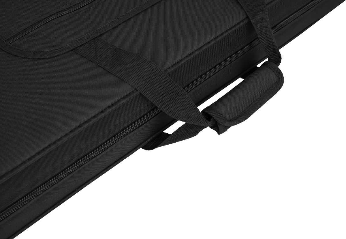 The Fender Stratocaster / Telecaster Foam Core Case offers a smart balance between lightweight portability and durable protection. Featuring a tough 600-denier nylon exterior and a rigid EPS foam interior, it shields your guitar from bumps, moisture, and wear. The plush-lined interior includes a secure accessory compartment, while the modern design adds style and function. A padded carry handle and removable shoulder strap provide comfortable transport, whether heading to rehearsal or a gig. Built for Strat and Tele guitars, this hybrid case blends the best of gig bag and hard case convenience.