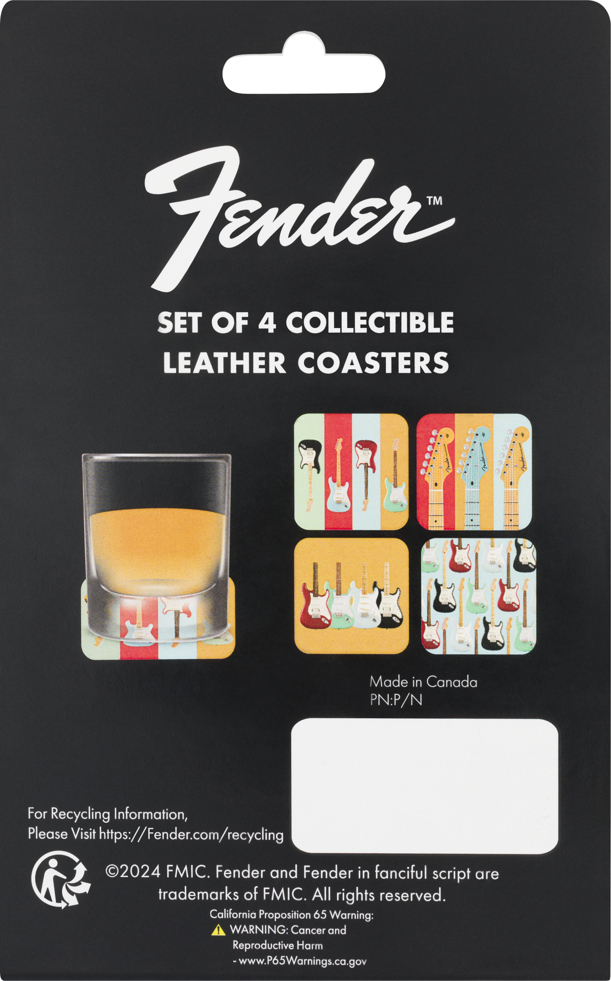 The Fender Stratocaster Modern Design Coaster Set adds a clean, contemporary touch to a home, studio, or creative space. Inspired by the familiar curves and design language of the Stratocaster, each coaster features a minimalist look that feels subtle rather than decorative. Made from 100 percent leather, the coasters provide a stable surface for drinks while protecting desks, amps, and furniture from heat and moisture.