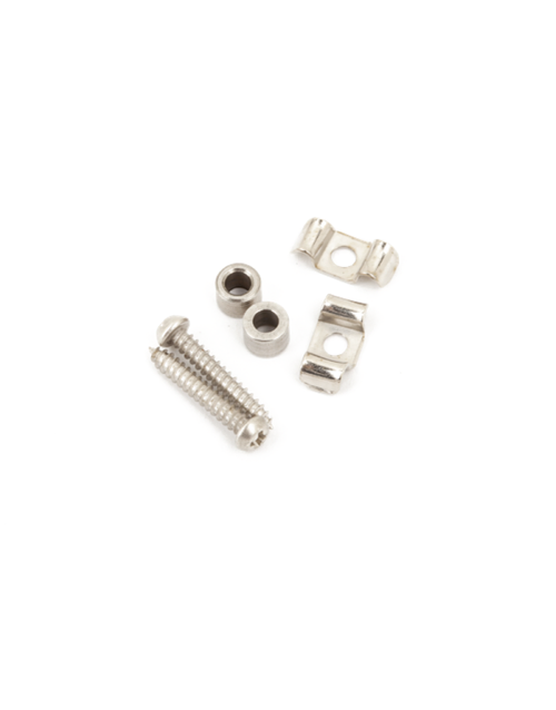 Set of two string guides (string trees) as found on American Vintage, Road Worn, Pawn Shop and Classic series Stratocaster models. Optimizes string tension and helps minimize tuning problems. Mounting hardware included.