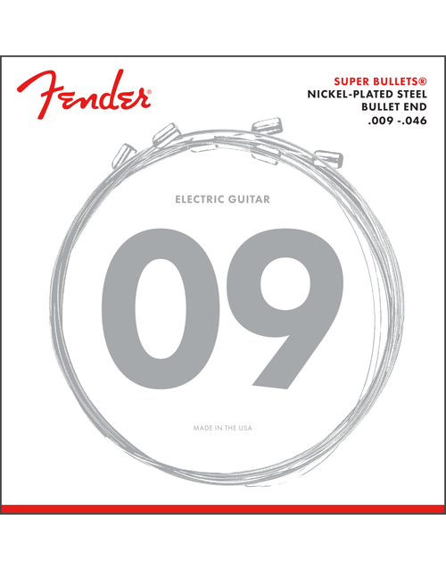 Fender American 3250LR Super Bullets electric guitar strings are built for players who want strong output, fast attack, and a smooth playing feel. The nickel-plated steel construction combines the brightness and dynamic response of steel with the more forgiving surface feel of nickel, helping notes cut clearly without feeling overly stiff under the fingers. Hex core construction increases snap and definition, producing a quicker pick response that suits rhythm precision and articulate lead work.