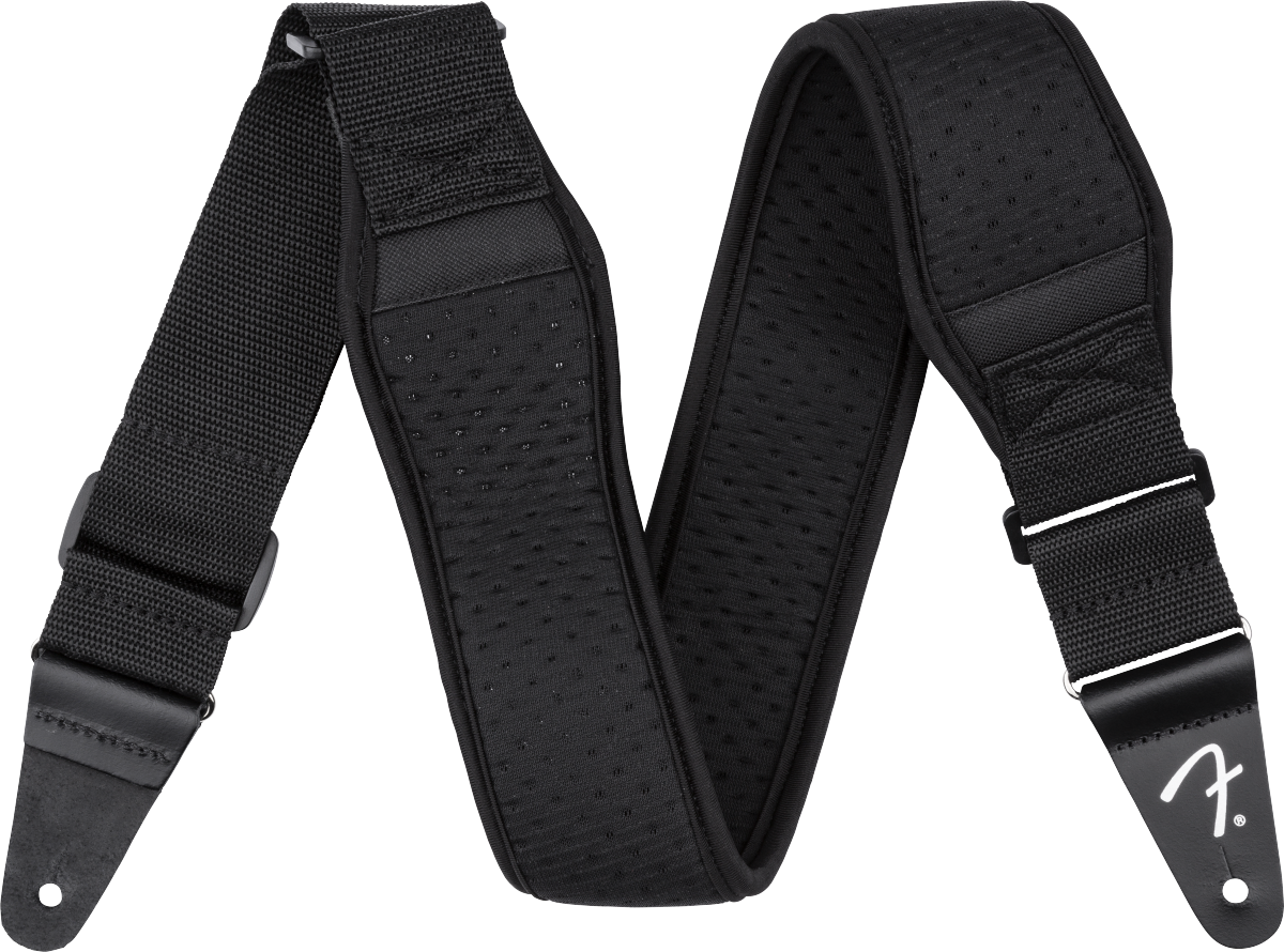 Designed for maximum comfort, the Fender Neoprene strap is perfect for enduring long practices and performances. The large neoprene pad alleviates weight off your back and shoulders while providing heat relief through its mesh construction. Extra reinforced pads on the end tabs ensure long-lasting durability for use with heavier instruments.