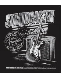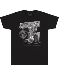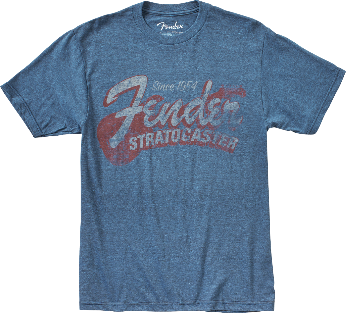 The Fender Stratocaster has moved the musical landscape for more than 60 years. Commemorate your allegiance to the world's most recognizable guitar with a T-shirt that speaks to that rich legacy. This dark blue tee keeps the Stratocaster's old-school vibe alive with a distressed look and a classic faded "Fender Stratocaster" insignia on the front. This tee is in size Extra Large (XL).