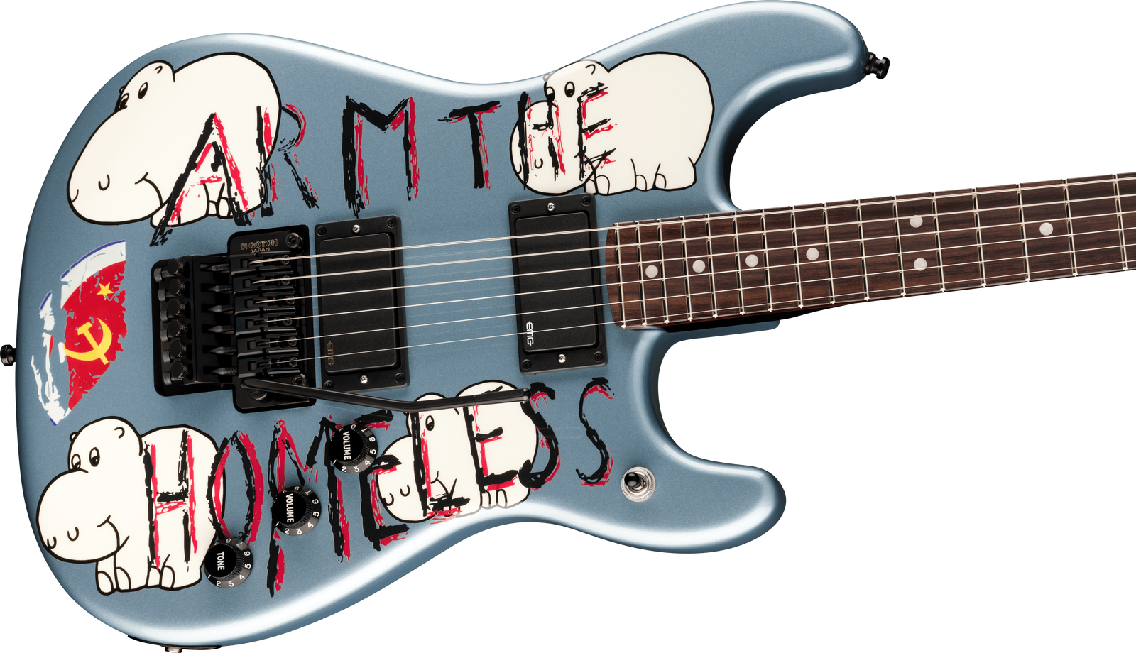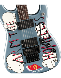 The Fender Tom Morello Arm The Homeless Stratocaster is a faithful recreation of the guitar that has powered decades of genre-defying performances. Built with an alder body and striking Blue Ice Metallic finish, it pairs a fast 15-inch radius rosewood fingerboard with a custom flat C maple neck and distinctive hockey stick headstock. Active EMG pickups deliver everything from articulate cleans to aggressive, high-output tones, while the Gotoh double-locking tremolo ensures rock-solid tuning under extreme use. Loaded with visual attitude and stage-ready hardware, this instrument is equal parts performance tool and statement piece, supplied in a deluxe black hardshell case.