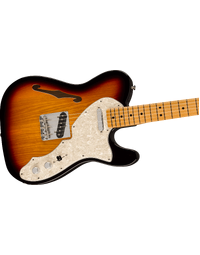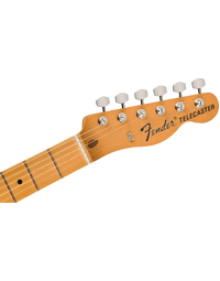 Crafted with a semi-hollow ash body and a maple neck, this guitar embodies the classic Fender sound – crisp, punchy, and rich in resonance. The late-'60s "C" shape neck offers a comfortable, inviting feel, while the 7.25" radius maple fingerboard with vintage-tall frets allows for expressive playing, perfect for those soulful bends and vibratos. Under the hood, you'll discover a pair of vintage-style '60s pickups that faithfully recreate the crystal-clear chime and raw, steely twang that made Fender famous. The vintage-style 3-saddle bridge with slotted steel saddles only adds to that authentic '60s Telecaster twang, and the vintage-style "F" stamped tuning machines offer classic aesthetics with enhanced tuning stability.