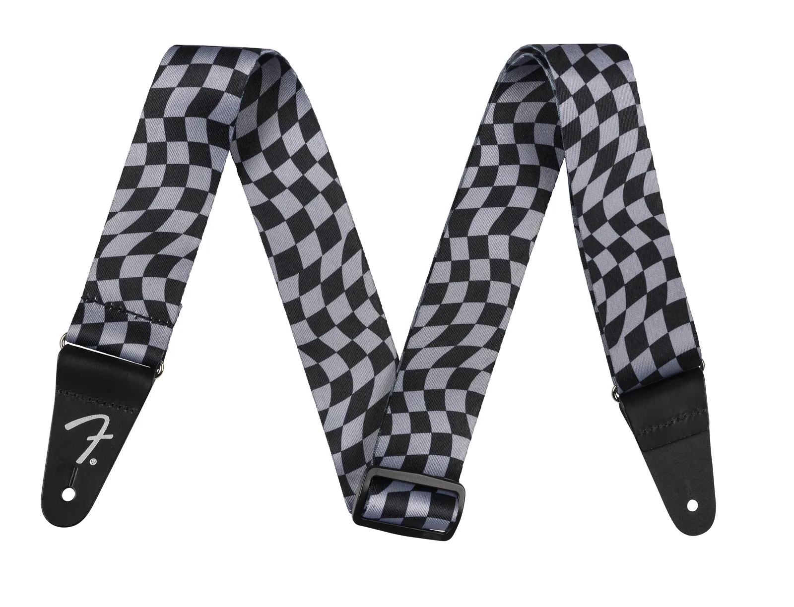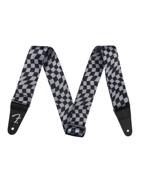The Fender Wavy Checkerboard Polyester Strap in Gray combines comfort, durability, and distinctive style. Featuring a bold wavy checkerboard design, this strap is made from smooth polyester, ensuring long-lasting performance during gigs or practice sessions. The 2" width provides excellent support, and the adjustable length (from 34" to 59") ensures a comfortable fit for players of all sizes. Finished with alternate Fender "F" white/black leather ends, this strap carries the iconic Fender touch. Made in Canada, it is built for both style and durability, making it the perfect choice for musicians looking to add a unique flair to their setup. At Riffs & Licks Music, we think this strap is ideal for players seeking comfort and eye-catching design.