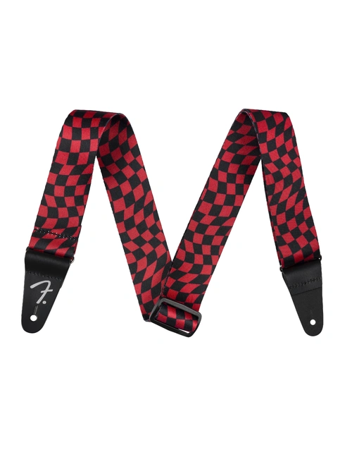 The Fender Wavy Checkerboard Polyester Strap in Red is designed for musicians who want both comfort and style. Featuring a bold wavy checkerboard design, this strap is crafted from smooth polyester for long-lasting durability and performance. The 2" width provides great support, while the adjustable length (from 34" to 59") ensures a perfect fit for players of all sizes. The strap is finished with alternate Fender "F" white/black leather ends, adding a touch of Fender’s signature style. Made in Canada, it’s built to withstand the rigors of live performances while offering comfort for extended use. At Riffs & Licks Music, we think this strap is a perfect choice for players looking to add a bold, stylish touch to their instrument setup.