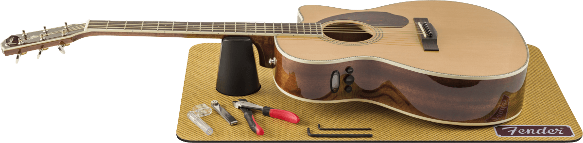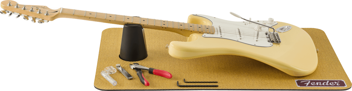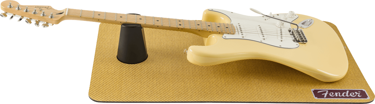 Repair and restore your instrument like a professional. The Fender Work Mat features a finish-safe neoprene pad and textured anti-slip bottom grip for ultimate durability. The included padded neck cradle holds your guitar at the proper angle for maintenance and adjustment. Crafted from durable EVA foam, the mat rolls up for quick and easy storage or on-the-go routine repairs. Elevate your work bench with the unmistakable look of Fender's iconic tweed design.