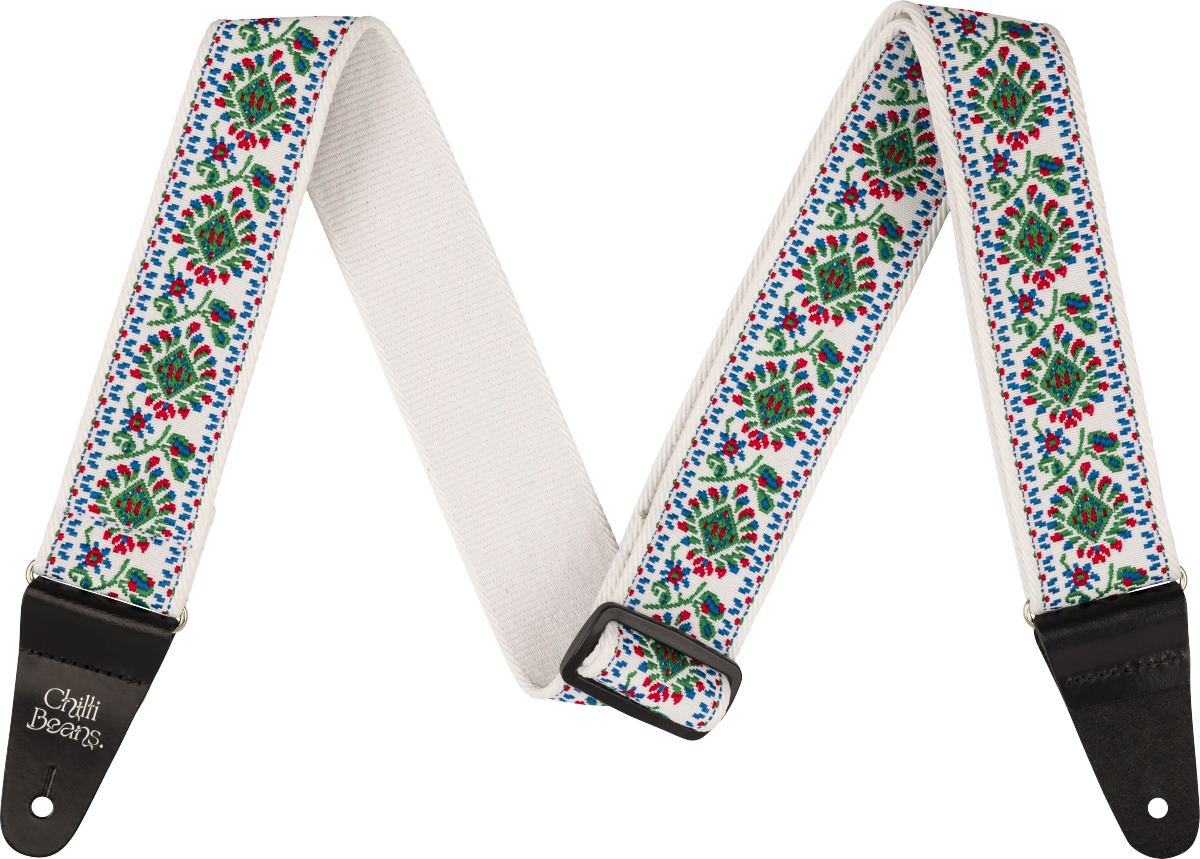 The vintage-style woven construction provides reliable support for long playing sessions, whether on stage, in rehearsal or at home. Its distinctive pattern stands apart from traditional strap designs, giving players an expressive way to personalise their instrument setup. Subtle branding details complete the look, with a silver foil Chilli Beans band logo featured on the strap and the Fender logo positioned at the opposite end.