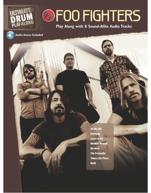 Exact drum transcriptions to eight Foo Fighters rock anthems, with online audio tracks featuring two versions of every song: an instrumental sound-alike recording, and a version without drums so you can play along. Titles: All My Life • Learn to Fly • Everlong • Monkey Wrench • My Hero • Best of You • The Pretender • Walk. Audio is accessed online using the unique code inside the book and can be streamed or downloaded. The audio files include PLAYBACK+, a multi-functional audio player that allows you to slow down audio without changing pitch, set loop points, change keys, and pan left or right.