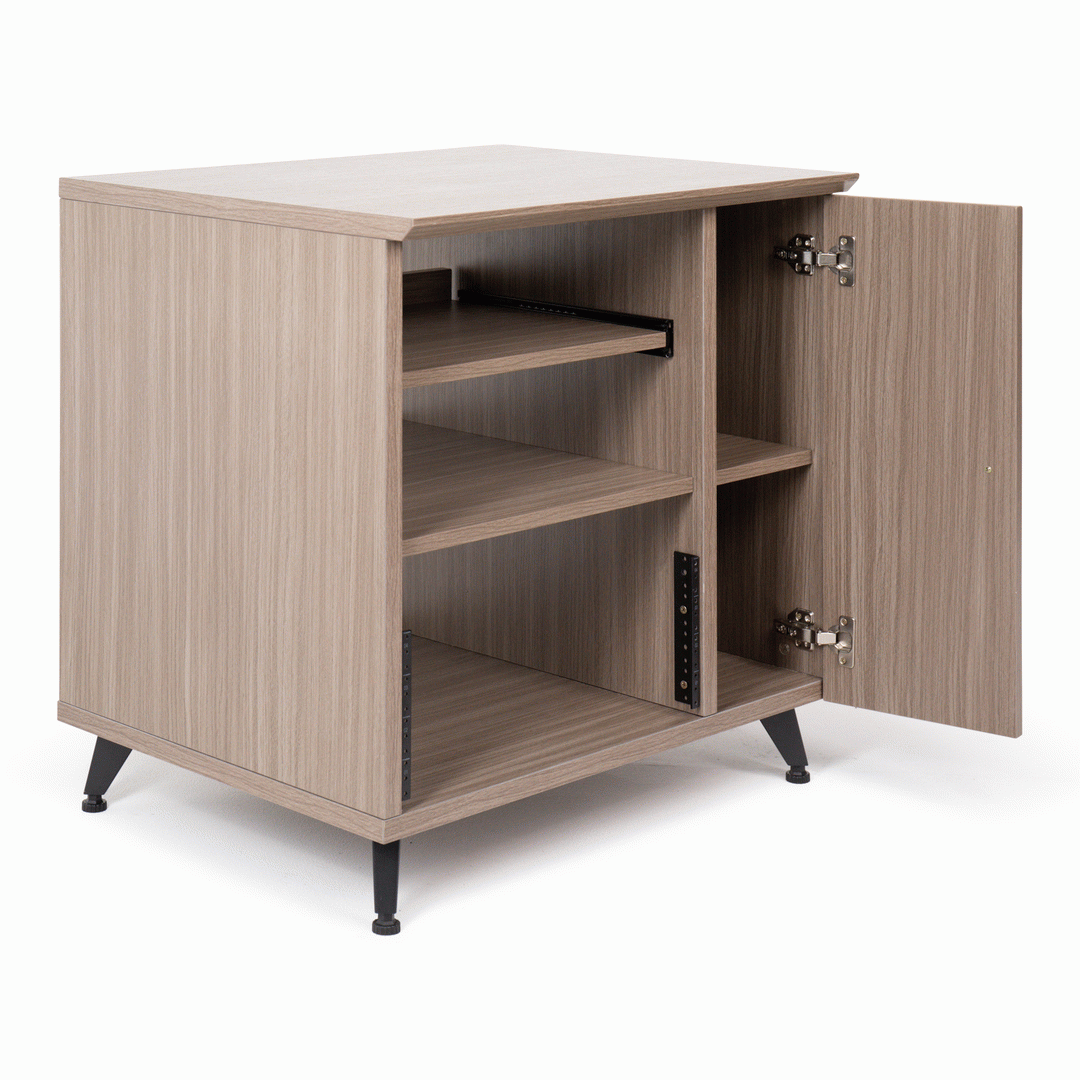 Elite Furniture Series Rolling Rack Sidecar Cabinet in Grey. Configurable Rack Spacing (4, 8 or 12U) Provides Plenty of Room for Preamps, Effects Processors & Similar Pro Audio Gear. Top Surface Provides Great Fit for Turntable, Table-Top Audio Interface or Small Mixer (30"/762mm x 24"/610mm). Optional Height-Adjustable Slide-Out Tray Features Soft-Close Drawer Slides with Underside Grip - Fits Small MIDI Controllers & Drum Machines.