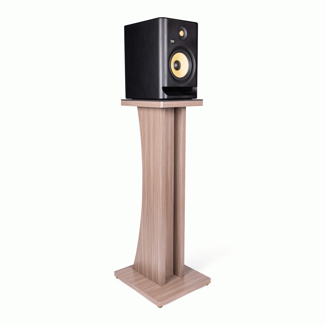 Gator Frameworks Elite Series Floor-Standing Studio Monitor Speaker Stand in Driftwood Grey Finish. Elegantly Displays Speakers in Studio, Living Room, Showroom Floor, or Similar Environment. Great for a Variety of Listening Applications – Studio Monitoring, Bookshelf & Stereo Speakers, Home Entertainment & Theater, Wireless, Turntable / Record Player Speakers. Sturdy 25mm-Thick Plywood Construction with Stable 13.5”/343mm-Wide Base Safely Supports Speaker Loads up to 75 lbs./34 kg. Fixed Height of 36.5”/927mm Brings Speakers to Ear Level for Improved Listening During Mixing & Playback. Speaker Platform with 5mm-Thick Foam Isolation Pad Measures 12”/305mm (L) x 10”/254mm (W). Recessed Cable Channel on Speaker Platform & Routing Cutout on Central Column for Organizing Cables. Product Dimensions: 15”/381mm (L) x 13.5”/343mm (W) x 36.5”/927mm (H), Net Weight: 20.5 lbs./9.3 kg. Easy to Assemble.
