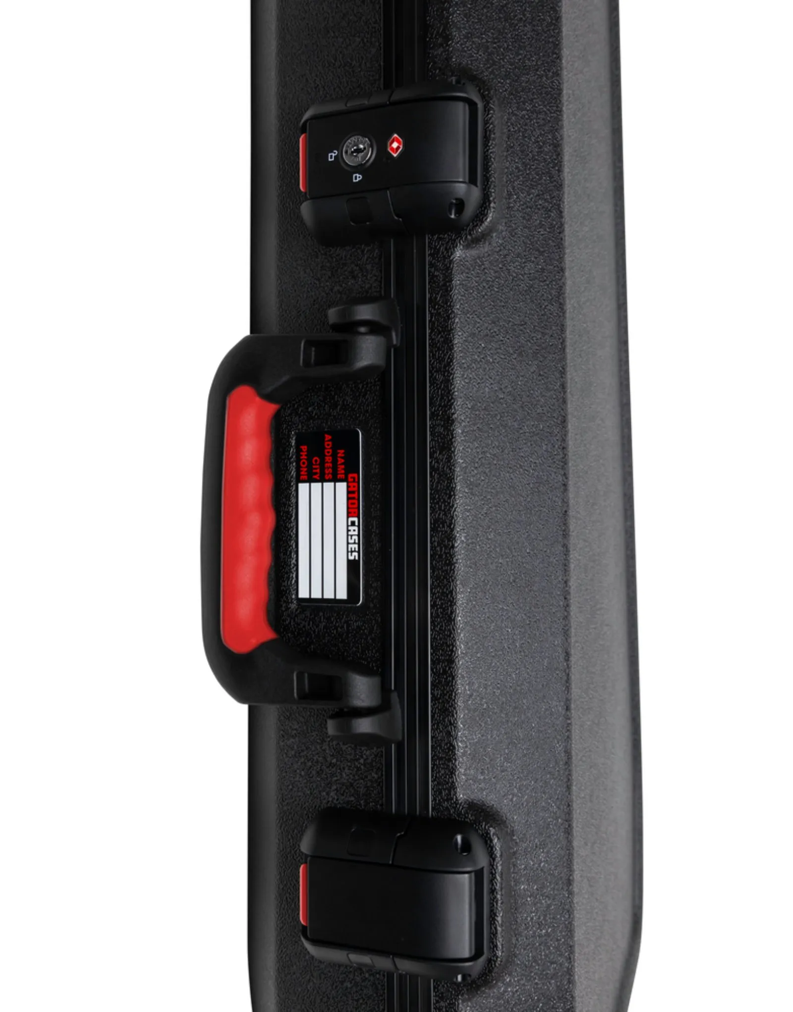 The Gator GTSA-HEADLESSELEC TSA ATA Moulded Headless Electric Guitar Hard Case provides top-tier protection for headless guitars, including models from Ibanez, Strandberg, Aristides, and Kiesel. Constructed with an ATA-moulded military-grade polyethylene outer shell, it offers exceptional durability and impact resistance, making it perfect for air travel and touring musicians. The patent-pending customizable EPS protective foam interior nest ensures a snug and secure fit, while the thick black plush lining keeps your guitar safe from scratches. Additional features include a TSA-approved locking centre latch for hassle-free travel, an ergo-grip injection-moulded handle for comfortable carrying, and surface-mounted impact diversion latch housing with a red release trigger for added security. Black powder-coated hardware and a continuous valance complete the rugged design. At Riffs & Licks Music, we think the GTSA-HEADLESSELEC is the ideal case for headless guitar players seeking maximum protection and travel convenience.