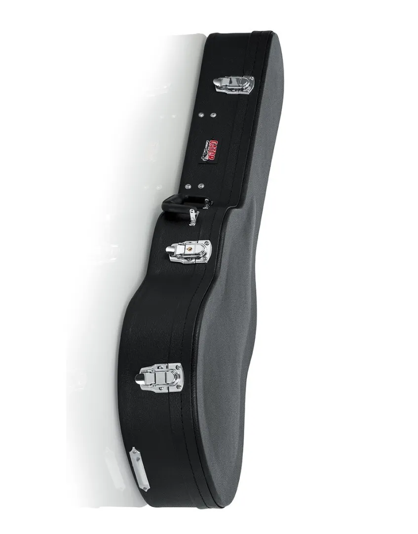 The Gator GWE-ACOU-3/4 Wood 3/4-Size Steel String Acoustic Guitar Hard Case is lightweight, ultra-slim, and designed to protect against the minor bumps and bruises of daily use. Ultra-durable plywood coated in black Tolex PVC forms a moisture-resistant, impact-resistant outer barrier while plush fabric lining keeps your guitar snug. The large interior storage compartment fits everything from straps and tuners to picks and capos. Chrome plated lockable latches form a secure enclosure and the ergonomic carrying handle perfectly balances the case’s weight and gives you a comfy grip on your gear. Keep your guitar safe and sound with the Gator GWE-ACOU-3/4 hard-shell wood case.