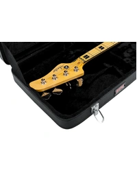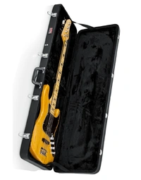 The Gator GWE-BASS Wood Standard Sized Electric Bass Hard Case is lightweight, ultra-slim, and designed to protect against the minor bumps and bruises of daily use. Ultra-durable plywood coated in black Tolex PVC forms a moisture-resistant, impact-resistant outer barrier while plush fabric lining keeps your guitar snug. The large interior storage compartment fits everything from straps and tuners to picks and capos. Chrome plated lockable latches form a secure enclosure and the ergonomic carrying handle perfectly balances the case’s weight and gives you a comfy grip on your gear. Keep your guitar safe and sound with the Gator GWE-BASS hard-shell wood case.