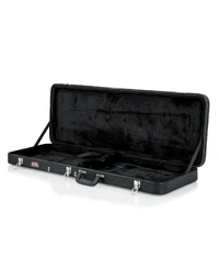 The Gator GWE-ELEC-WIDE is a rugged wood hard case built for wide-body electric guitars like PRS-style, ESP Viper, Ibanez GART, and similar shapes. Constructed from ultra-durable plywood and wrapped in black Tolex PVC, this case is both impact-resistant and moisture-repellent. Inside, thick plush lining and a spacious accessory compartment protect your guitar from bumps and store your gear, while also reinforcing neck support. Chrome-plated, lockable latches keep your instrument secure, and the ergonomic handle makes transport easy and balanced.
