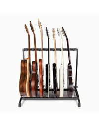 Whether hauling it on the road, keeping it at the studio, or reserving it for the rehearsal room, the 7-space collapsible guitar rack by Rok-It provides easy-access storage for up to seven of your favorite electric and acoustic guitars. The stand fully collapses for easy travel and storage when not in use. Thick, foam-padded tubing on all contact surfaces protects your guitar’s finish from dings and scratches. Rubberized feet on the bottom also help to protect your gear by keeping the stand planted firmly on the floor.