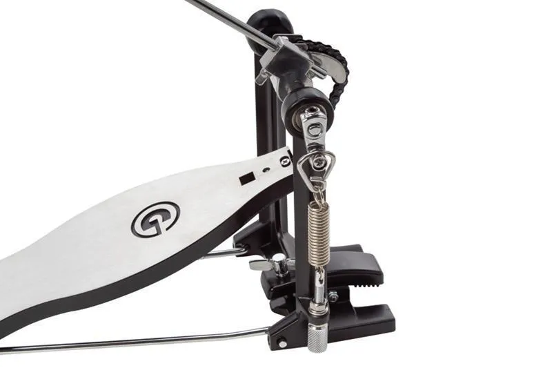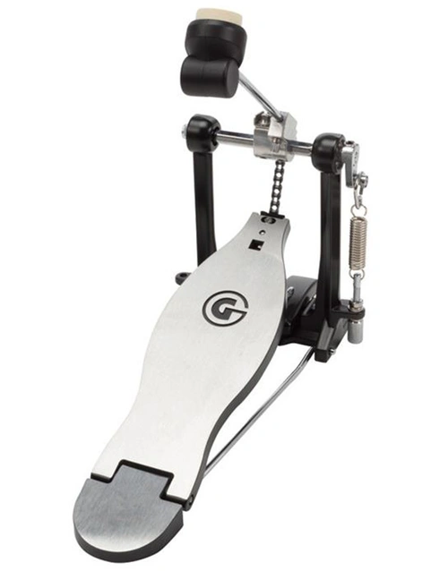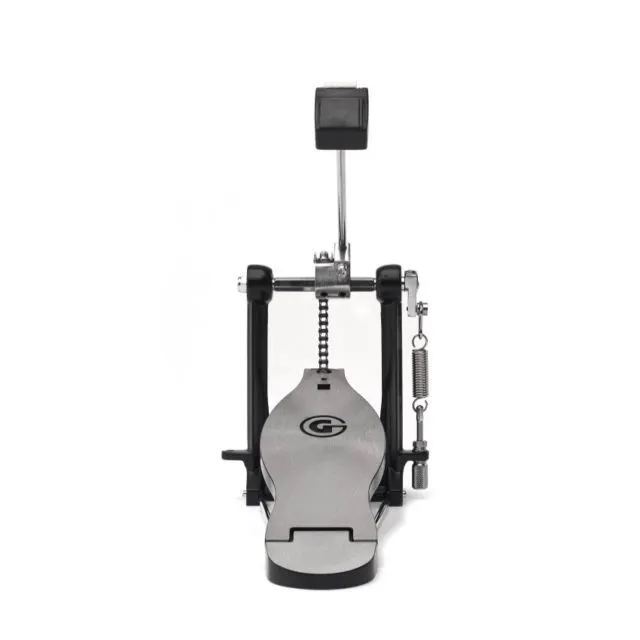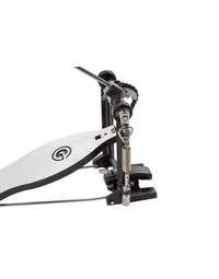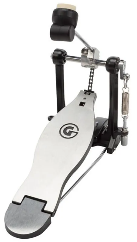 Single Chain Drive Single Bass Drum Pedal. Clean and simple with quick response. Fast touch "G" style pedal board design and dual surface balanced bass drum beater.