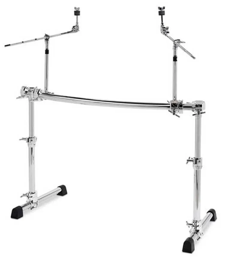 The GCS500H Chrome Series Rack is a 2 post, height adjustable, curved rack with a 46" curved cross bar and 2 cymbal boom arms.
