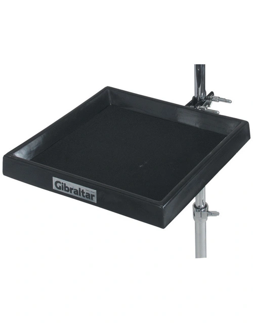 Attaches to a cymbal stand or rack bar. 12" x 12" with 1" high borders and padded surfaces.