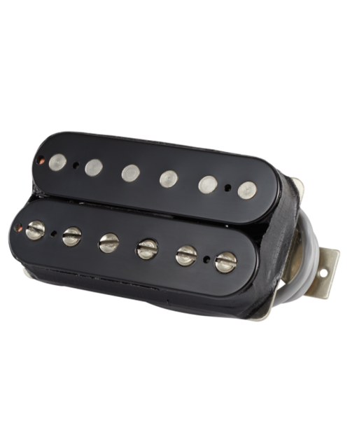 The Gibson 498T Hot Alnico V Bridge Humbucker Pickup is a high-output powerhouse that delivers enhanced crunch and sustain. With a combination of an Alnico 5 magnet and balanced windings on each coil, it emphasizes the upper midrange frequencies for a beefy, sizzling output that's perfect for hard rock. The pole pieces are specially spaced for bridge positioning, allowing for powerful leads and thick rhythms without sacrificing single-note definition. With shielded, four-conductor wiring and full wax potting to eliminate microphonic feedback, this pickup offers versatile series, parallel, or split coil operation.