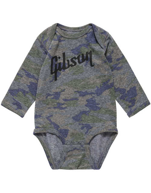 This Camo Baby Onesie is made from a 60%/40% cotton/polyester blend and features the Gibson logo.