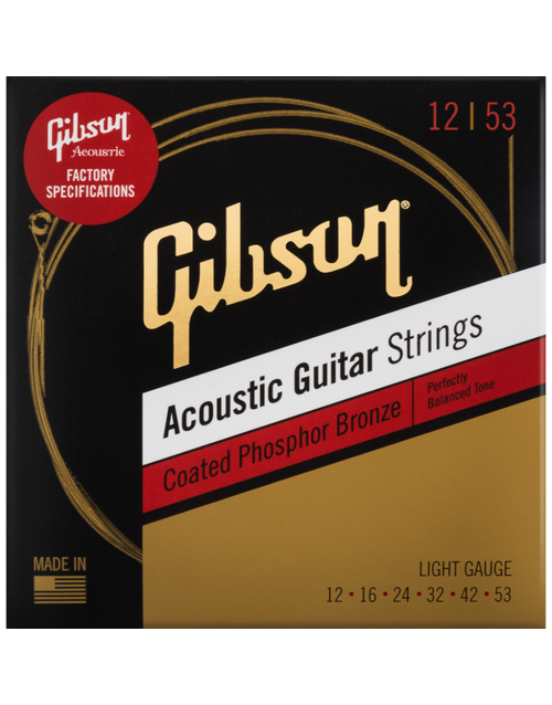 Developed and approved by our team of Master Luthiers, Gibson Coated Phosphor Bronze Strings are factory specification at the Gibson Acoustic facility in Bozeman, MT. These strings feature a high-carbon steel, hex-shaped core wrapped in phosphor bronze that is very thinly coated with a proprietary polymer. The result is unmatched durability that does not compromise vibrant tone like the rest. Discover the lush clarity and superior warmth that is suitable for any playing style.