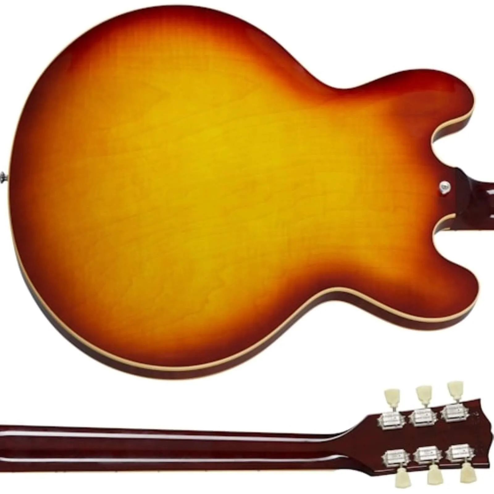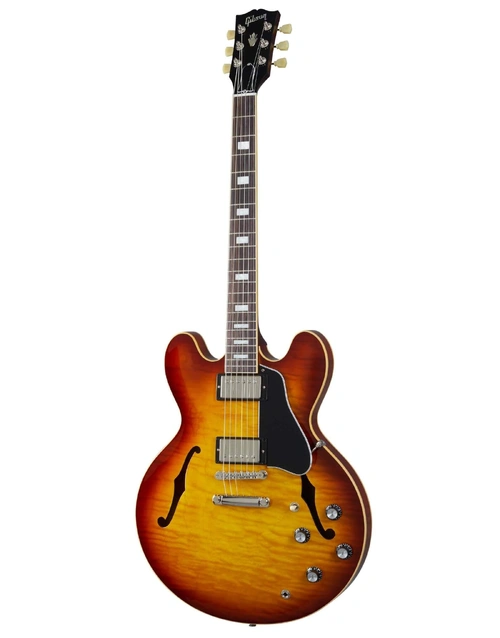 The Gibson ES-335 Figured is the perfect blend of form and function. Crafted with a thermally engineered maple centreblock, and thermally engineered quarter-sawn Adirondack spruce bracing, players will be impressed by the lightweight feel and expanded range of tonal capabilities. Equipped with high-end appointments like our hand-wired control assembly with orange drop capacitors, Gibson's new Calibrated T-Type humbucking pickups, Vintage Deluxe style tuners and light weight Aluminium ABR-1 bridge and stop bar tailpiece anchored with steel thumb-wheels and studs. The AAA figured maple is set off by staggering gloss finishes including, Sixties Cherry, Antique Natural, and Iced Tea.