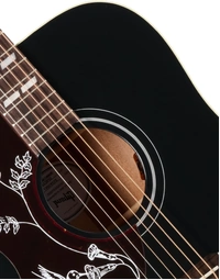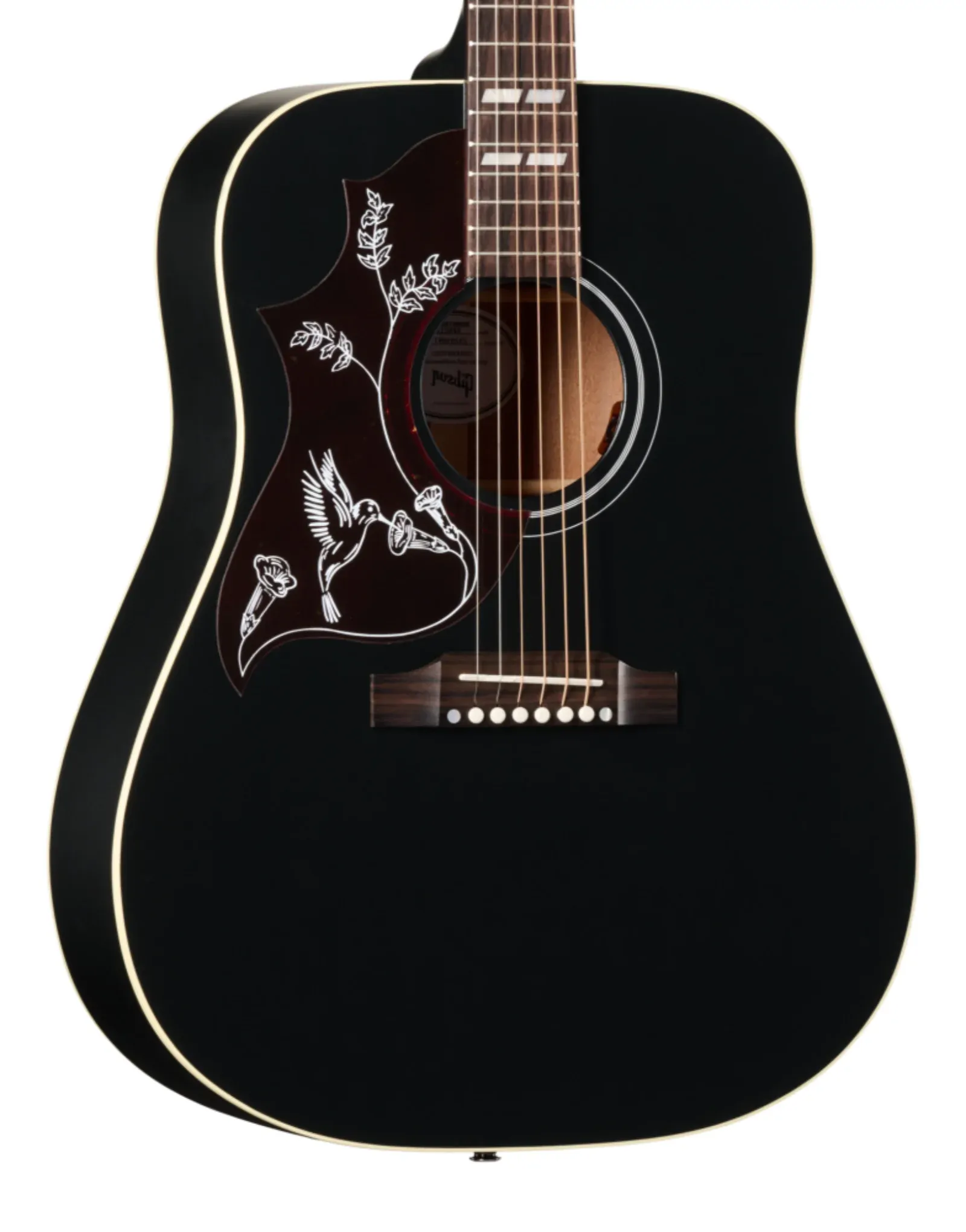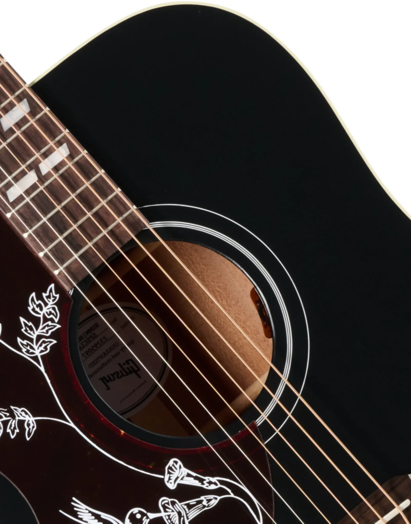 The slightly thinner concert-depth body improves comfort while tightening the bass response, making it easier to handle without losing that familiar Hummingbird voice. A rounded neck profile and 12" radius rosewood fingerboard provide a comfortable, natural feel suited to both strumming and more detailed playing styles.