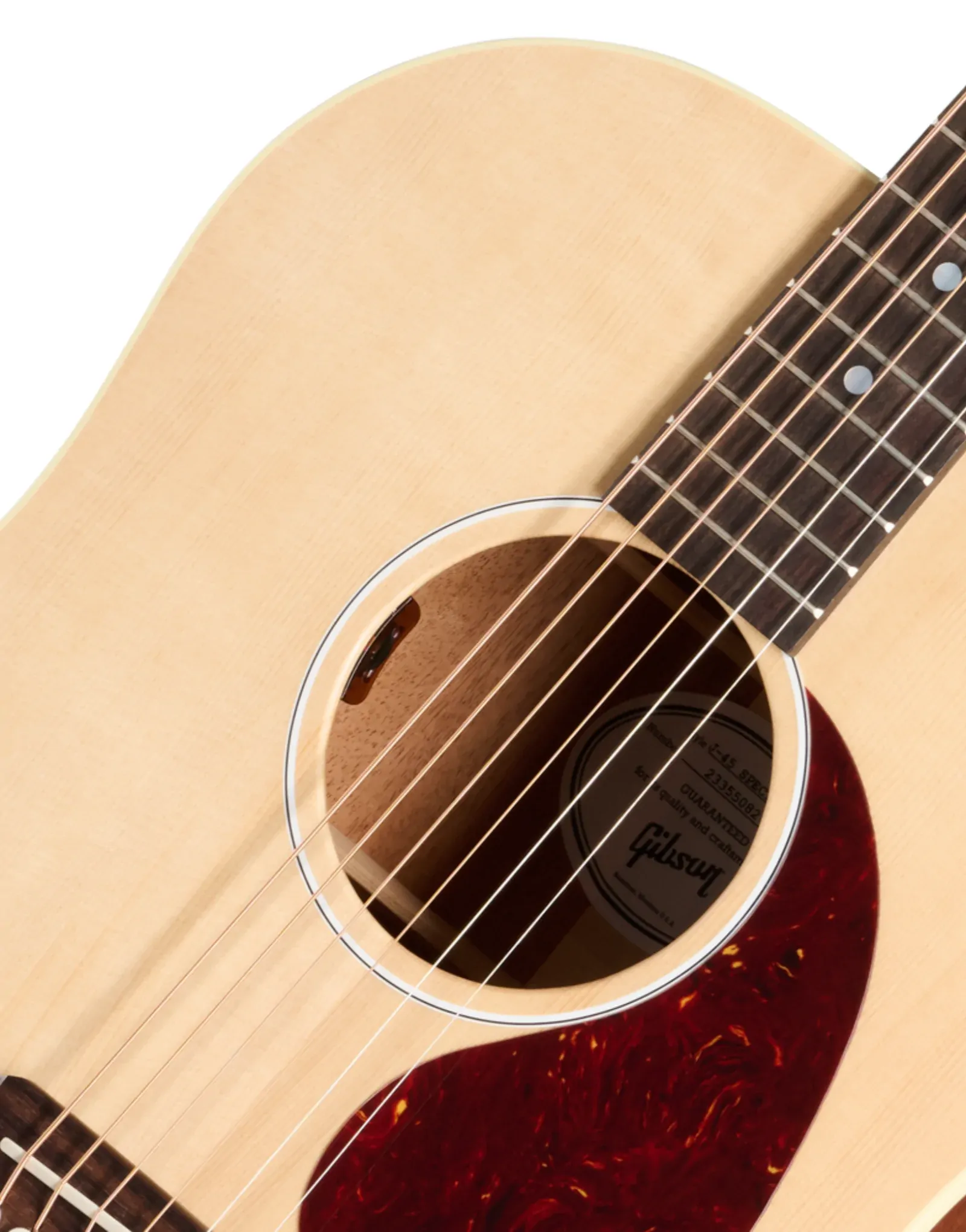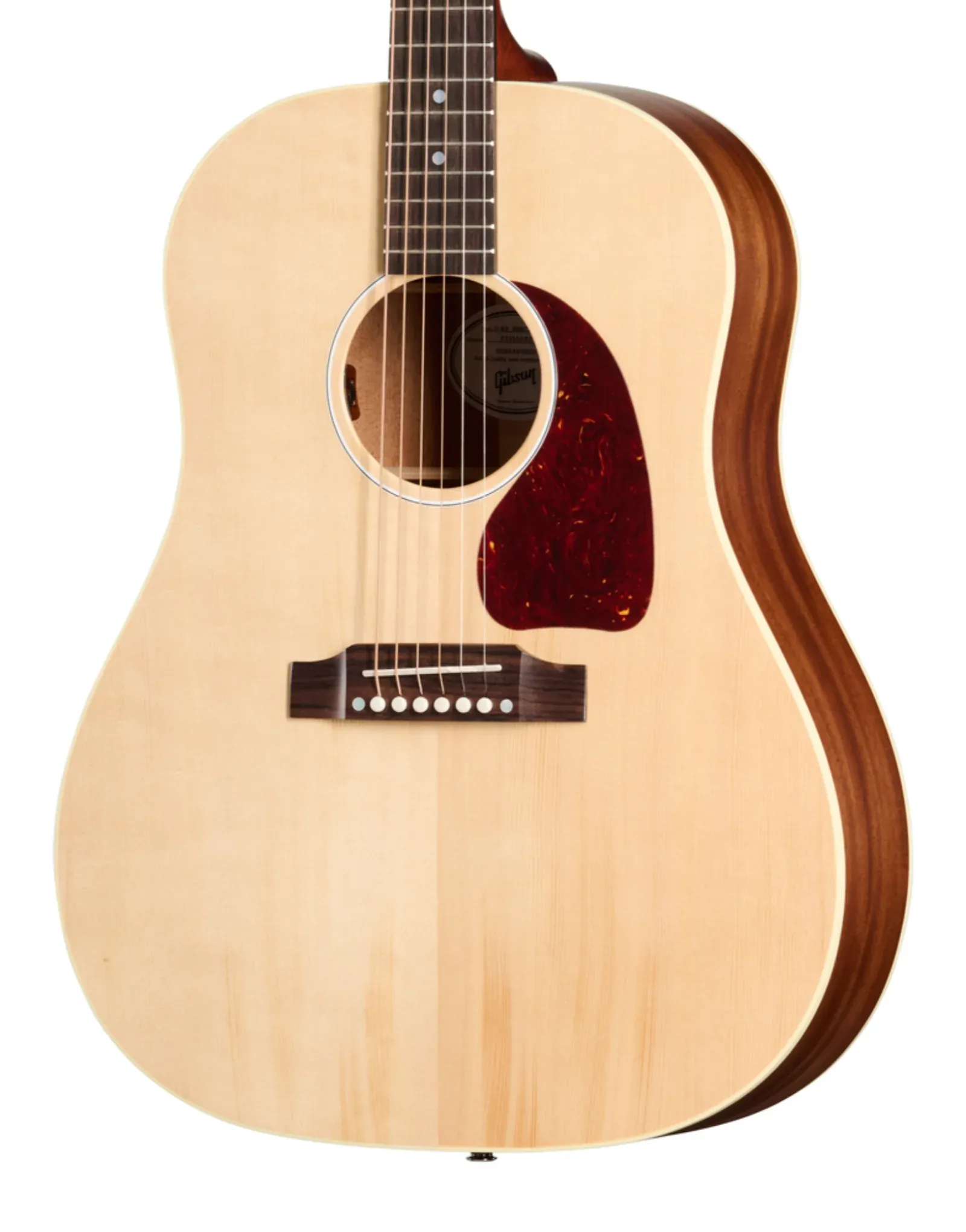 The Gibson J-45 Special Satin Natural carries forward the legacy of one of the most recorded acoustic guitars ever made, with a slightly more streamlined feel. Built with a solid Sitka spruce top and solid mahogany back and sides, it delivers the warm, balanced tone the J-45 is known for, with a clear top end and controlled low response that sits easily in a mix.