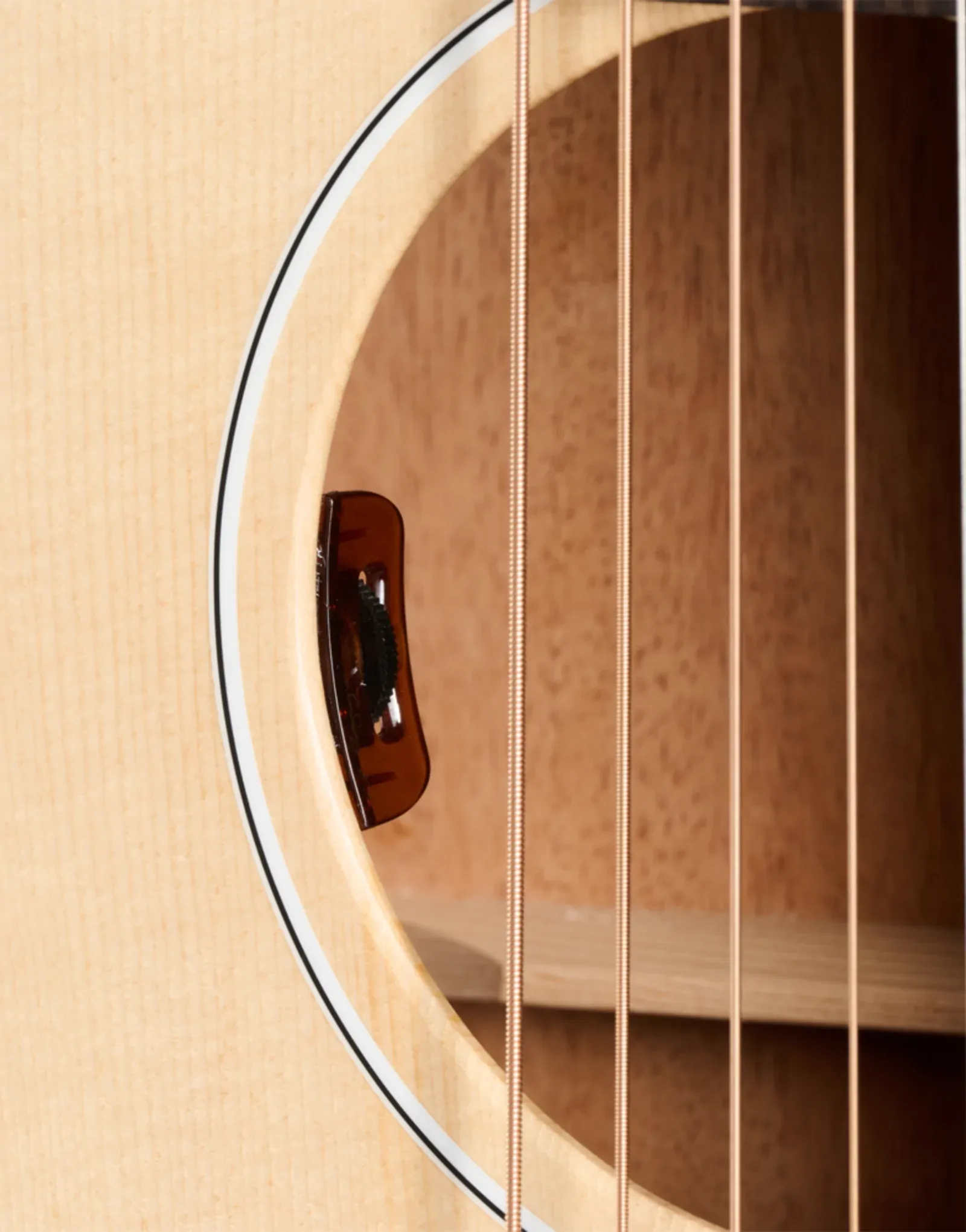 The slightly thinner concert-depth body makes it more comfortable to hold while tightening up the bass response, giving it a more focused and articulate character compared to a traditional full-depth dreadnought.