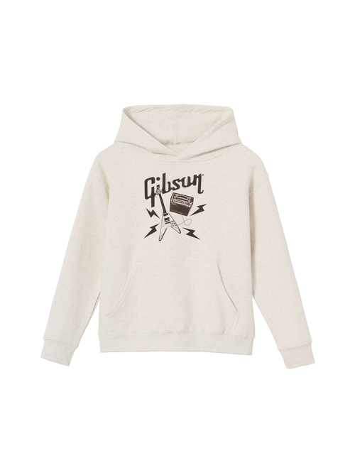 This warm Kid's Flying V Pullover Hoodie is made from a 50%/50% cotton/polyester blend and features artwork with a Gibson Flying V guitar and MESA amp - a classic pairing for great tone.