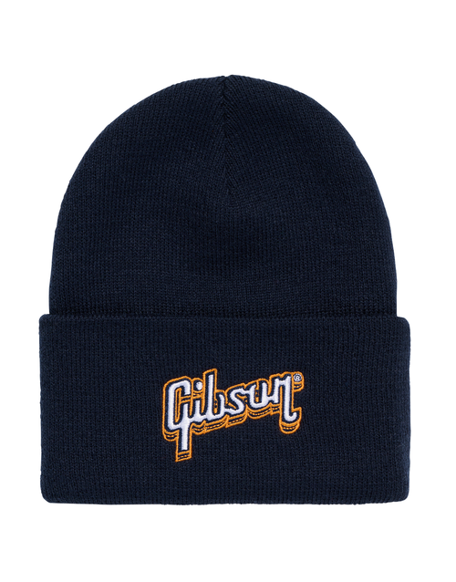 This warm, navy, cuffed Kid's Logo Beanie has an embroidered Gibson logo.