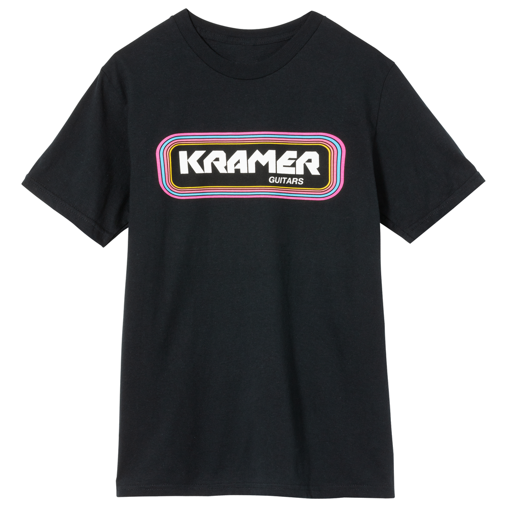 This colourful, radio station-inspired, bumper sticker-style Kramer logo shirt will take you back to the 80s when hard rock and metal ruled the FM airwaves. 100% Cotton. Unisex sizing, standard fit. Machine wash cold with similar colours, tumble dry on low.