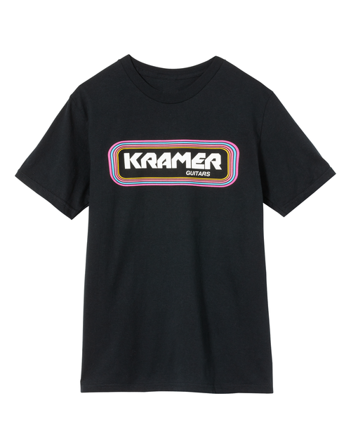 This colourful, radio station-inspired, bumper sticker-style Kramer logo shirt will take you back to the 80s when hard rock and metal ruled the FM airwaves. 100% Cotton. Unisex sizing, standard fit. Machine wash cold with similar colours, tumble dry on low.