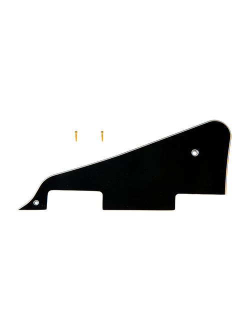 An original replacement Gibson five-ply vinyl pickguard designed specifically for the Les Paul Custom. This distinct pickguard adds a traditional vintage look to any Les Paul Custom. This OEM part comes with installation screws, and is available only in Black.