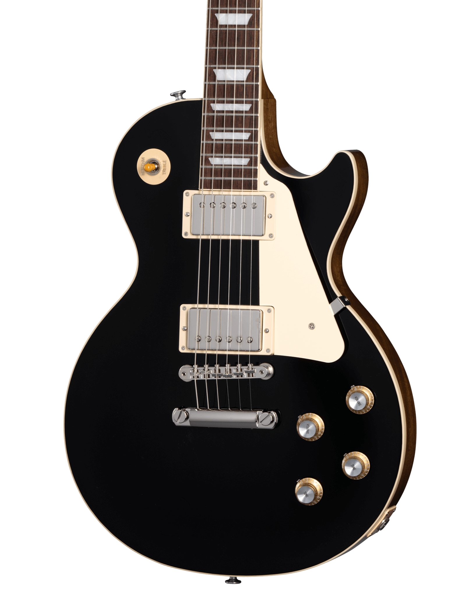 The new Les Paul Standard returns to the classic design that made it relevant, played and loved - shaping sound across generations and genres of music. It pays tribute to Gibson's Golden Era of innovation and brings authenticity back to life. The Les Paul Standard 60's has a solid mahogany body with an AA figured maple top, and a slim taper 60's-style mahogany neck with a rosewood fingerboard and trapezoid inlays. It's equipped with a classic-style Tune-O-Matic bridge, aluminum stop bar tailpiece, Grover Rotomatic "Kidney" tuners, and gold top hat knobs with silver reflectors. A pair of 60's Burstbucker humbucking pickups are loaded with AlNiCo V magnets, audio taper potentiometers and orange drop capacitors.