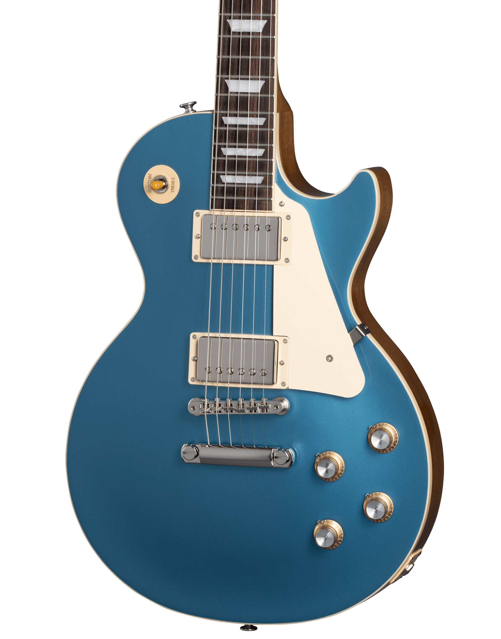 The new Les Paul Standard returns to the classic design that made it relevant, played and loved - shaping sound across generations and genres of music. It pays tribute to Gibson's Golden Era of innovation and brings authenticity back to life. The Les Paul Standard 60's has a solid mahogany body with an AA figured maple top, and a slim taper 60's-style mahogany neck with a rosewood fingerboard and trapezoid inlays. It's equipped with a classic-style Tune-O-Matic bridge, aluminum stop bar tailpiece, Grover Rotomatic "Kidney" tuners, and gold top hat knobs with silver reflectors. A pair of 60's Burstbucker humbucking pickups are loaded with AlNiCo V magnets, audio taper potentiometers and orange drop capacitors.