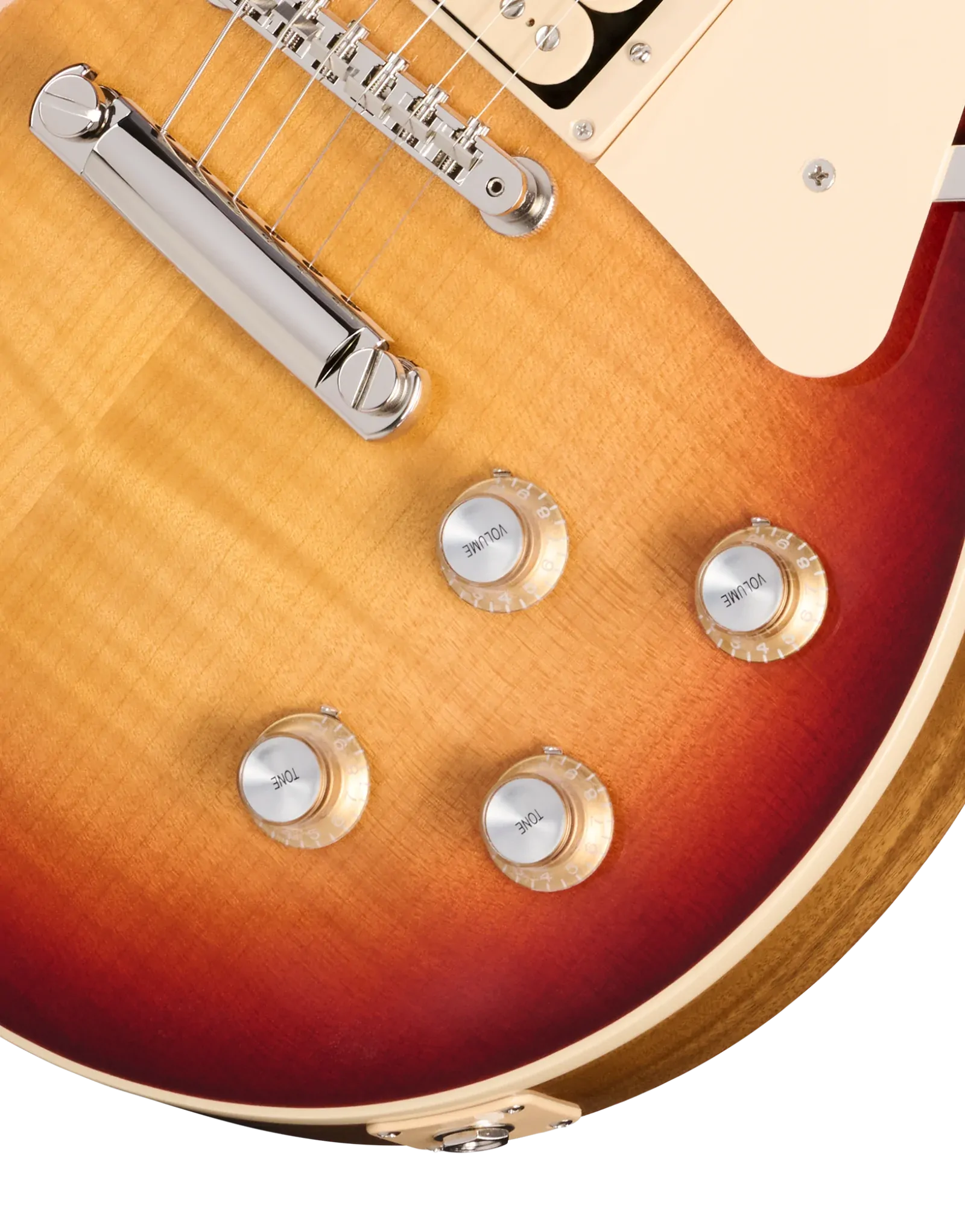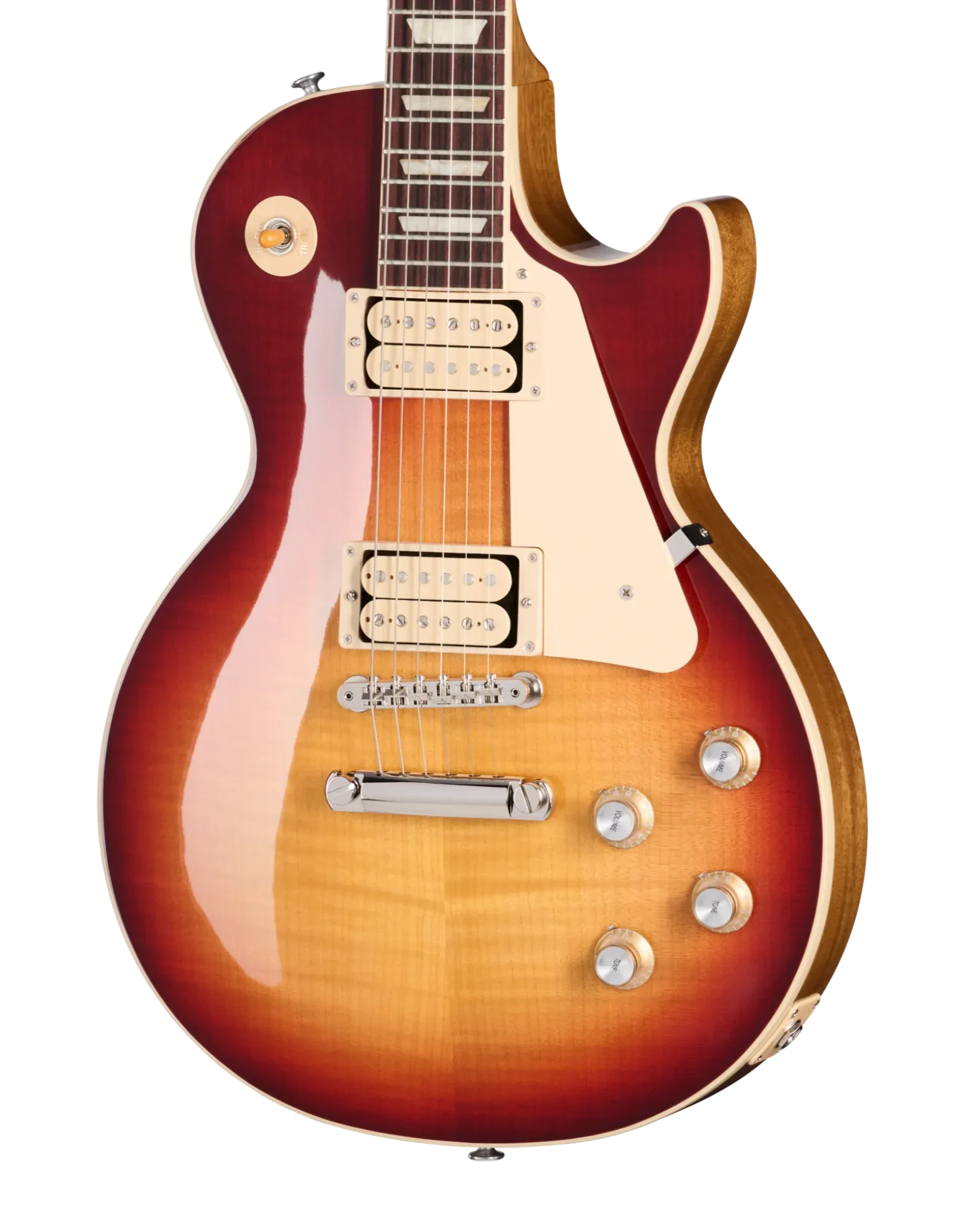 The Gibson Les Paul Standard 60s Double Trouble in Vintage Bourbon Burst is a limited-run model that adds rare vintage flair to a beloved classic. It features a solid, non-weight-relieved mahogany body with a carved figured maple cap, a SlimTaper mahogany neck, and an Indian rosewood fretboard with trapezoid inlays and 22 medium jumbo frets. Uncovered Burstbucker 61R and 61T humbuckers with Double Classic White bobbins and Alnico 5 magnets provide powerful, articulate tone with vintage styling. Hardware includes an ABR-1 Tune-O-Matic bridge, aluminium Stop Bar tailpiece, Grover Rotomatic tuners with Kidney buttons, and gold Top Hat knobs with silver reflectors. Finished in hand-sprayed Vintage gloss nitrocellulose lacquer, each guitar has a subtly aged look and a unique burst pattern. Limited to 500 pieces worldwide, it delivers tone, style and exclusivity.