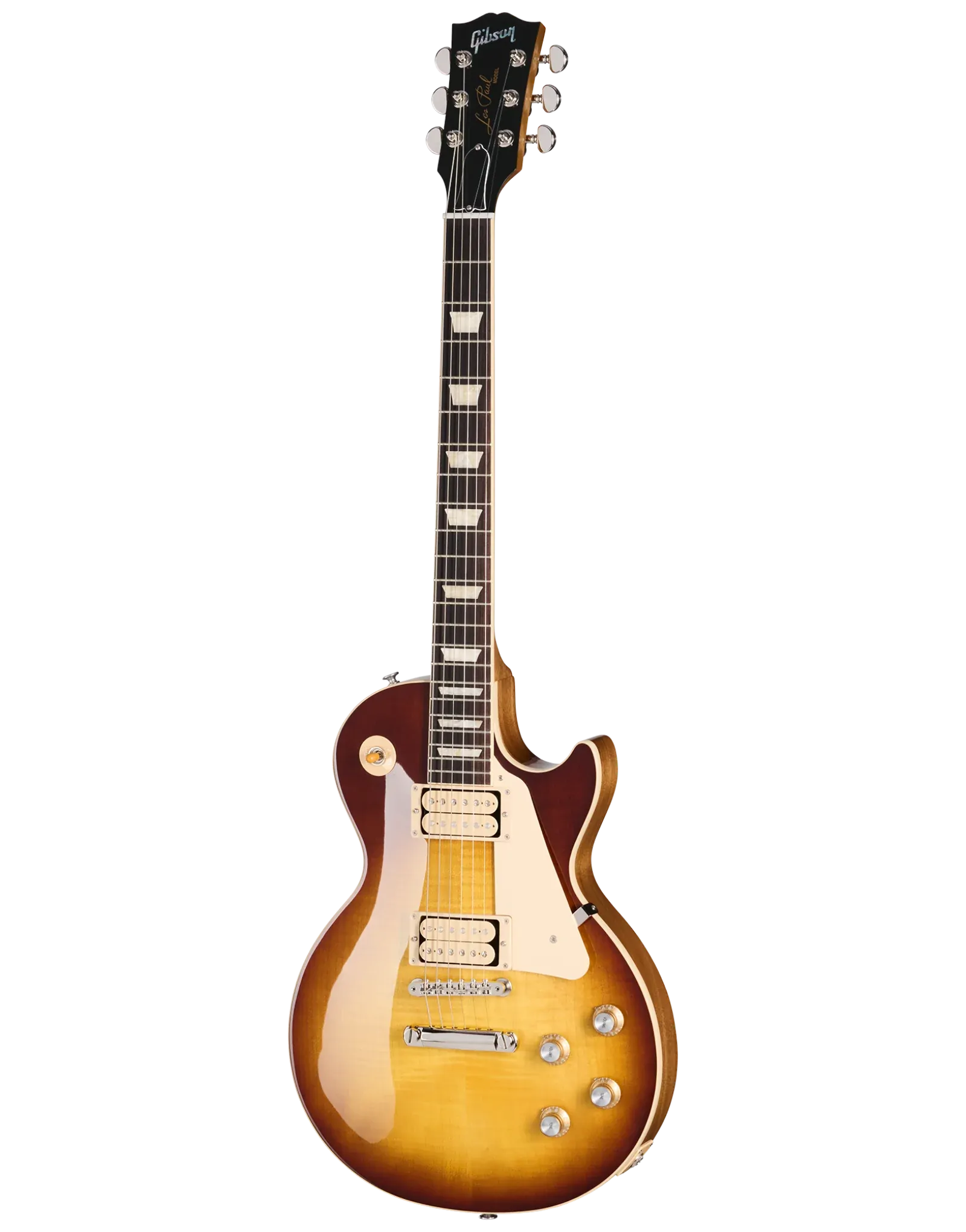 The Gibson Les Paul Standard 60s Double Trouble in Vintage Tobacco Burst adds rare vintage flair to a classic design. This limited-edition model features all the premium appointments of a regular Les Paul Standard 60s, with two unique upgrades: uncovered Burstbucker 61R and 61T pickups with Double Classic White bobbins, and a hand-sprayed Vintage gloss nitro finish that mimics the subtle fading of an aged '60s instrument. A non-weight-relieved mahogany body with AA figured maple top provides resonant tone and sustain, while the SlimTaper mahogany neck and rosewood fretboard offer fast, comfortable playability. Equipped with an ABR-1 Tune-O-Matic bridge, Grover Rotomatic tuners, and Orange Drop caps, this model delivers iconic tone and tuning stability.