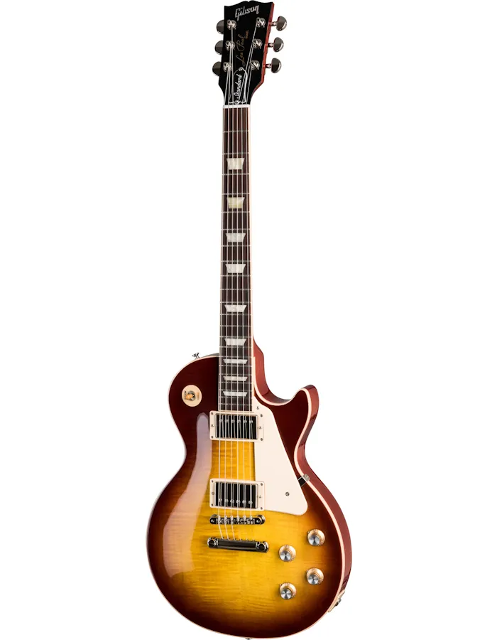 The new Les Paul Standard returns to the classic design that made it relevant, played and loved - shaping sound across generations and genres of music. It pays tribute to Gibson's Golden Era of innovation and brings authenticity back to life. The Les Paul Standard 60's has a solid mahogany body with an AA figured maple top, and a slim taper 60's-style mahogany neck with a rosewood fingerboard and trapezoid inlays. It's equipped with a classic-style Tune-O-Matic bridge, aluminum stop bar tailpiece, Grover Rotomatic "Kidney" tuners, and gold top hat knobs with silver reflectors. A pair of 60's Burstbucker humbucking pickups are loaded with AlNiCo V magnets, audio taper potentiometers and orange drop capacitors.