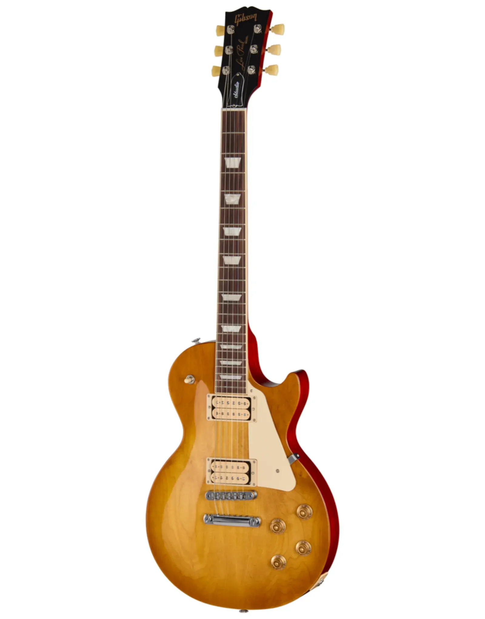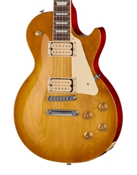 The Gibson Les Paul Studio Double Trouble in Dirty Lemon Burst takes the core Les Paul formula and gives it a sharper visual edge with exposed Burstbucker Pro pickups featuring double classic white bobbins. Underneath the look, it stays true to the essentials—mahogany body, maple cap, and set neck construction—delivering the familiar balance of warmth, sustain, and midrange punch.