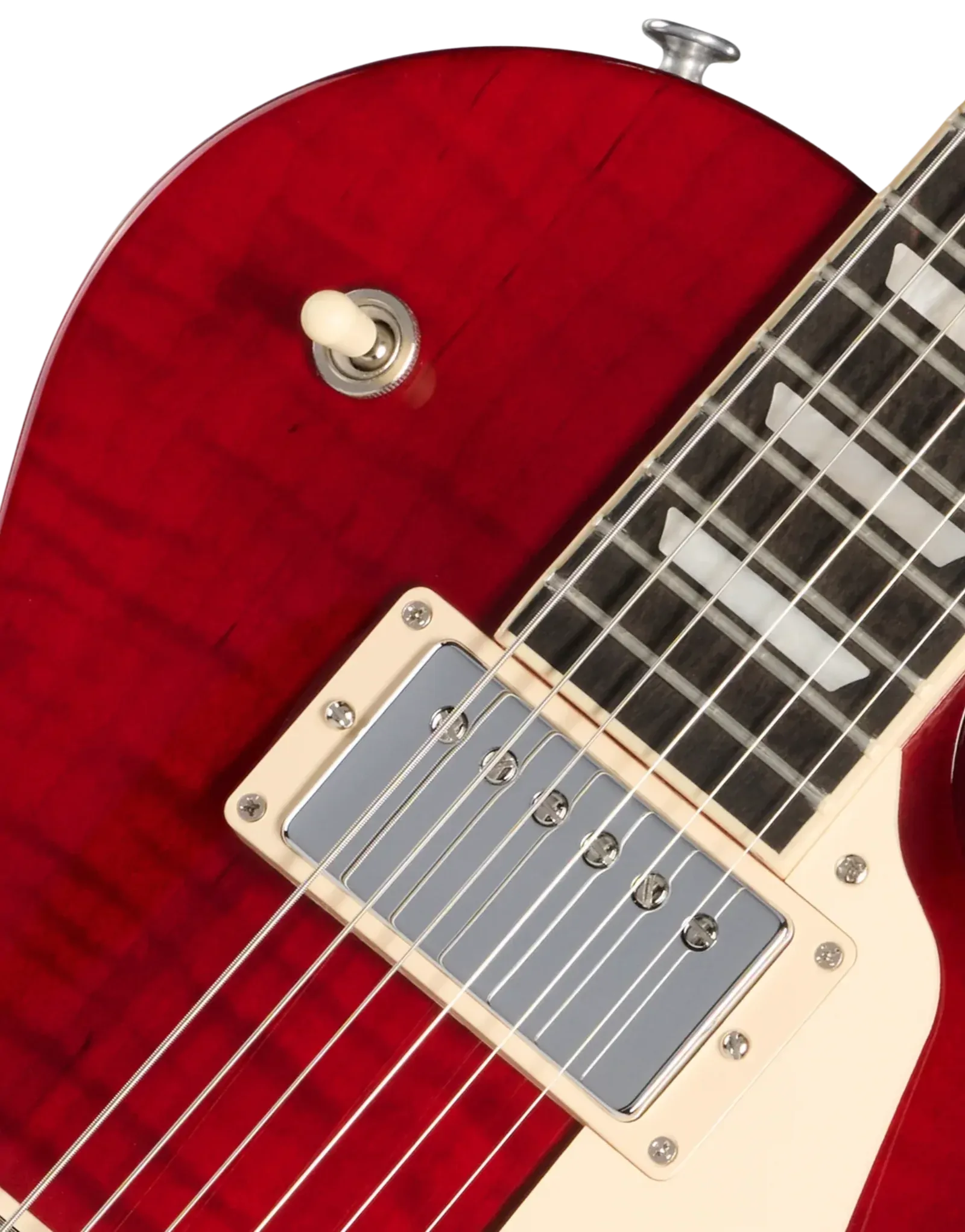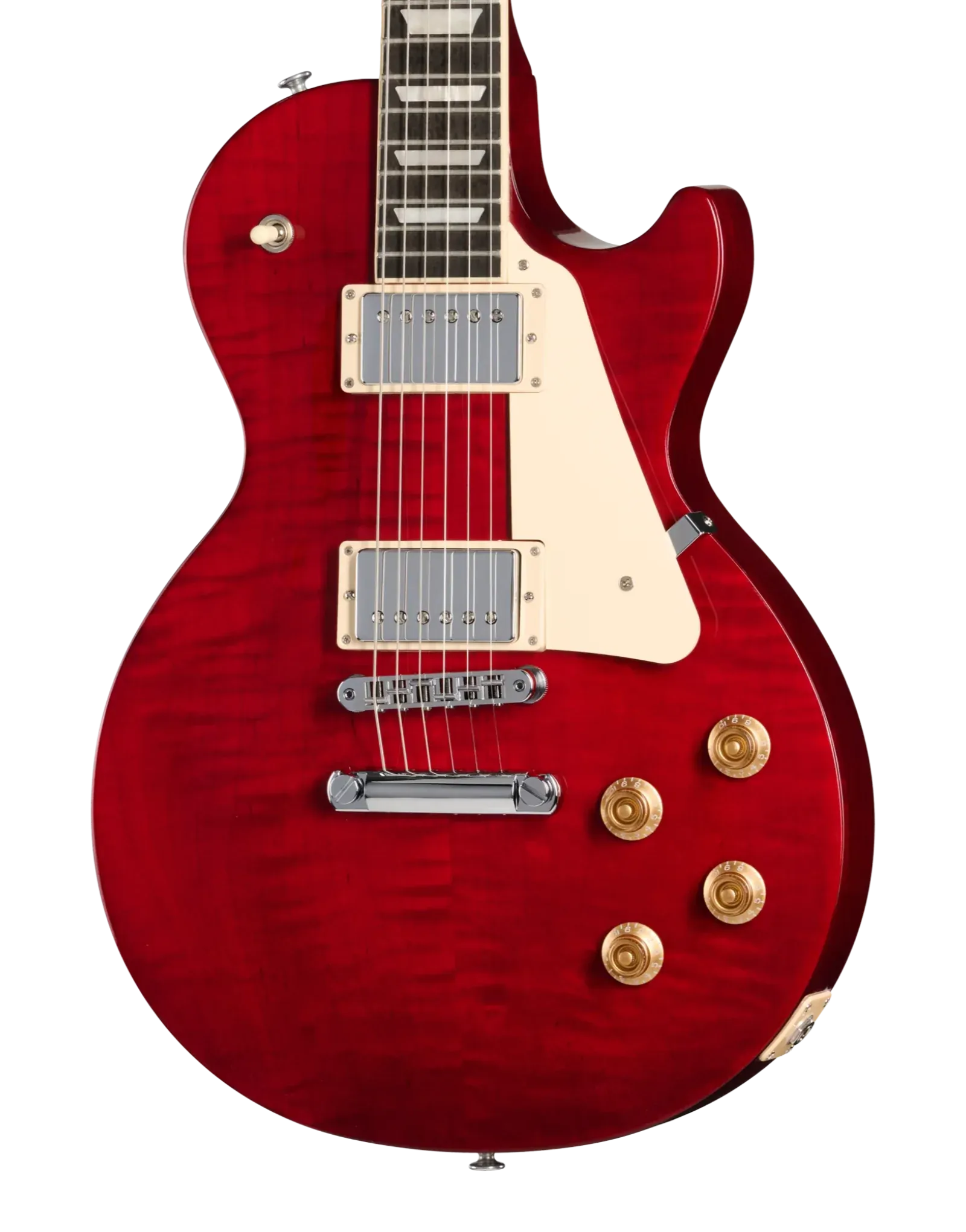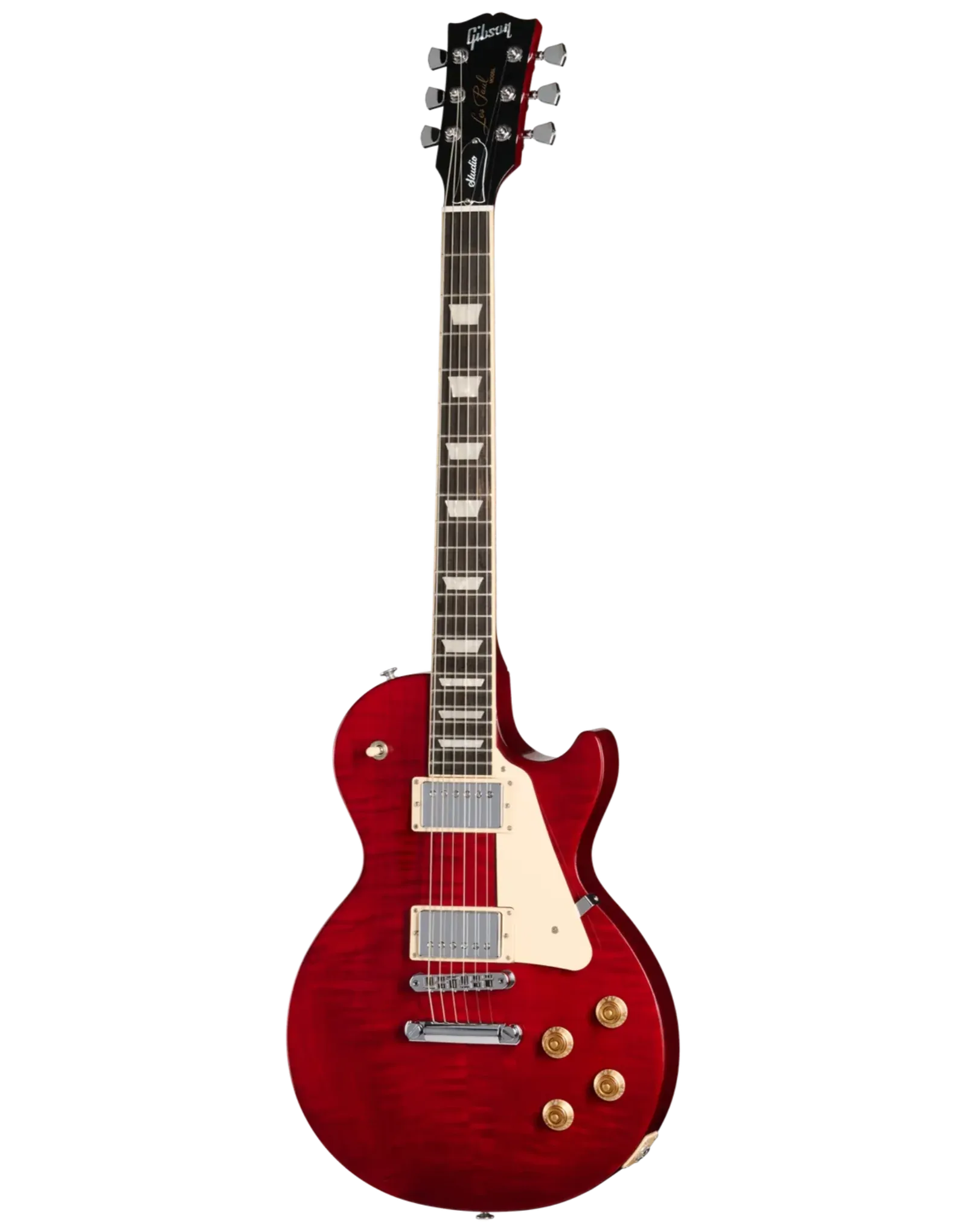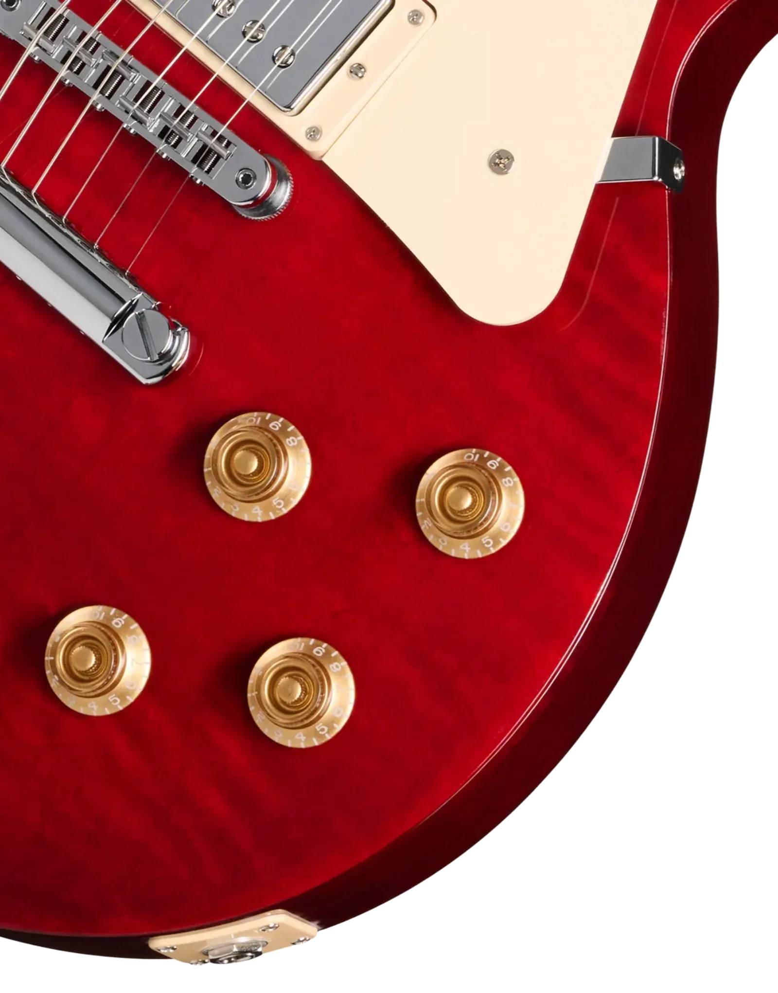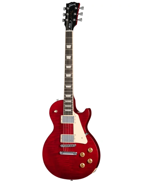 The Gibson Les Paul Studio Session Cherry is a refined take on the classic Les Paul, built for players who want familiar tone with more flexibility and a lighter, more comfortable feel. The mahogany body with an AA figured maple cap delivers that recognisable Les Paul balance of warmth and midrange punch, with added clarity and definition from the maple.