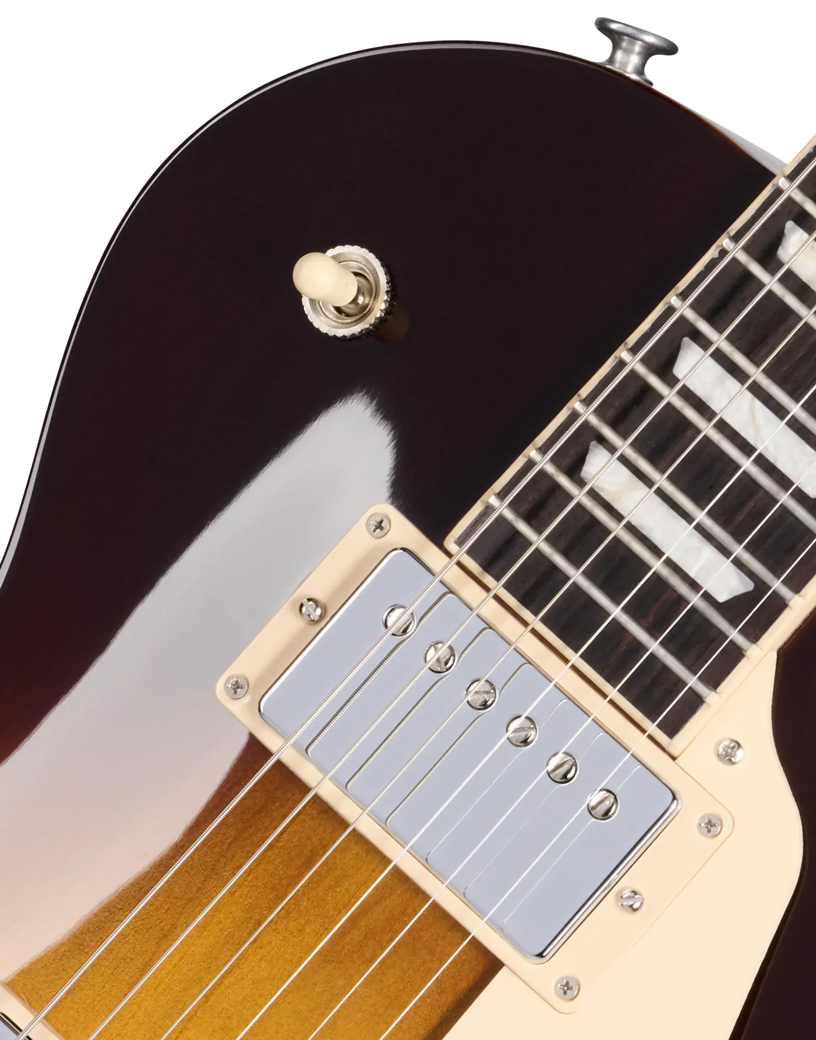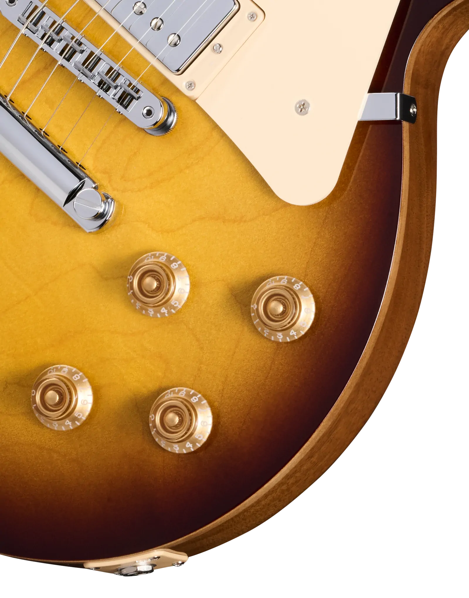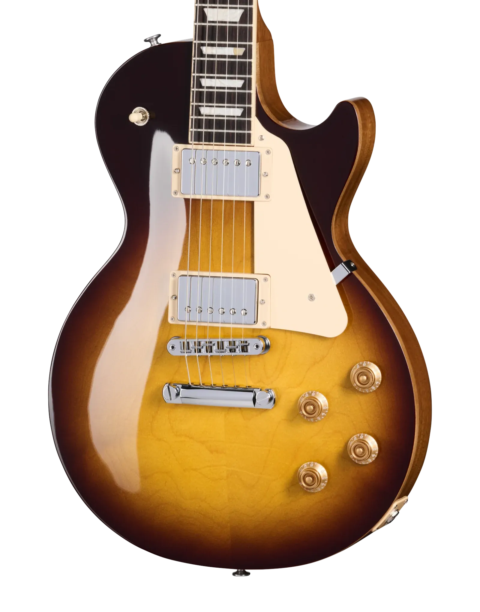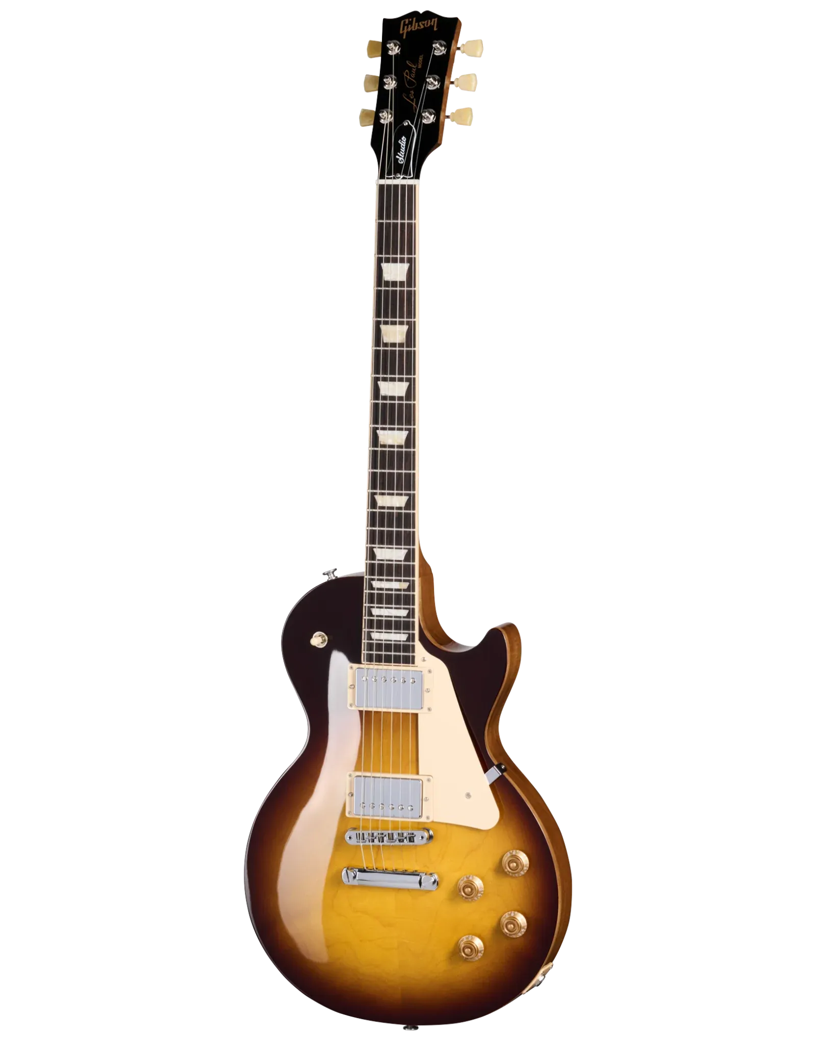 The Gibson Les Paul Studio in Tobacco Burst blends classic tonewoods with modern comfort and versatility. Built with an Ultra-Modern weight-relieved mahogany body and carved plain maple top, it delivers legendary Les Paul tone with improved playing comfort. A SlimTaper mahogany neck with bound rosewood fretboard offers fast, smooth playability, while Burstbucker Pro pickups provide powerful tones, from rich humbucker warmth to articulate single-coil clarity via push/pull coil tapping. Finished in gloss Tobacco Burst and featuring cream plastics, Vintage Deluxe tuners, and a soft shell case, the Les Paul Studio is the essential workhorse for players seeking versatility and dependability.